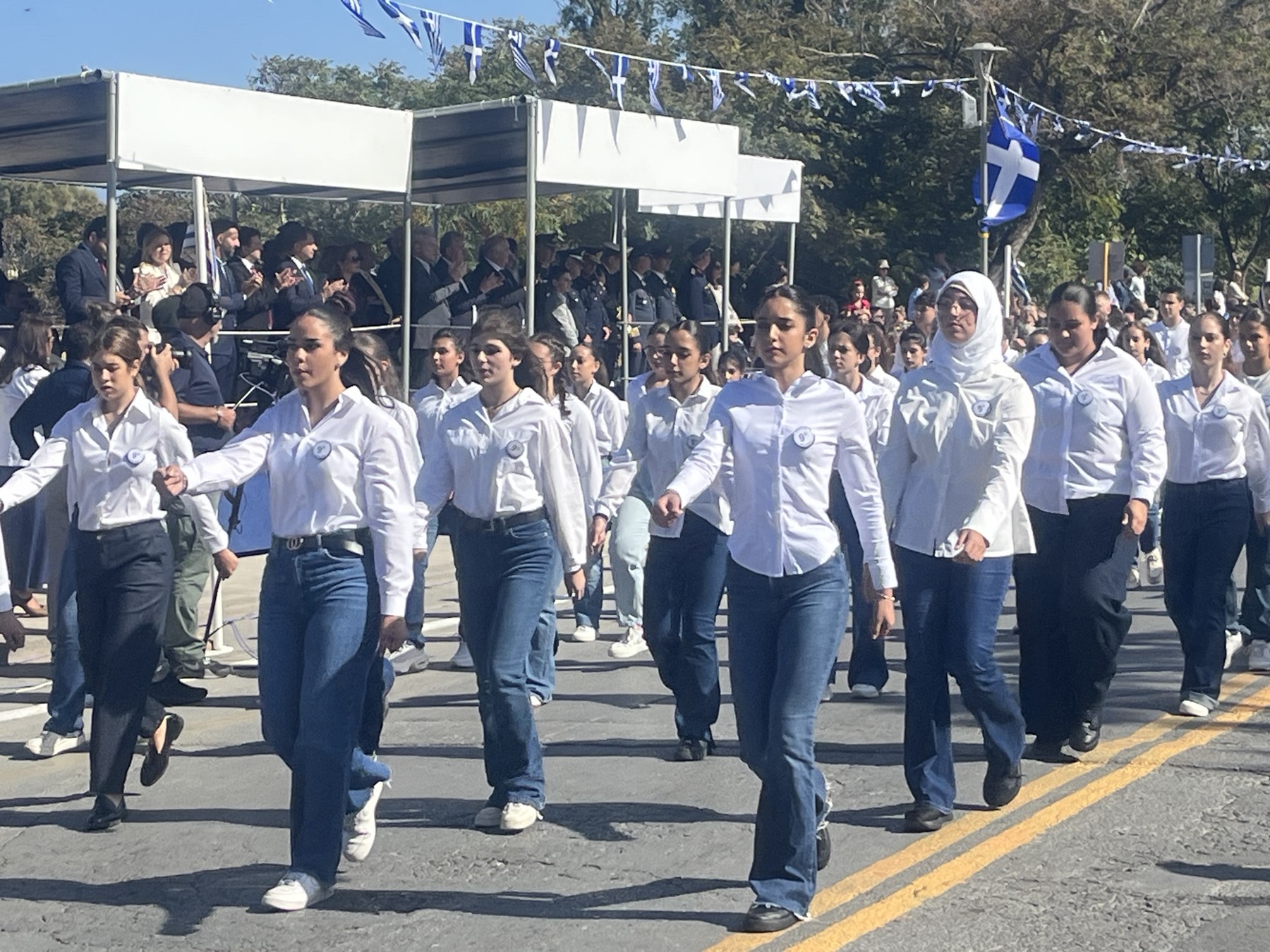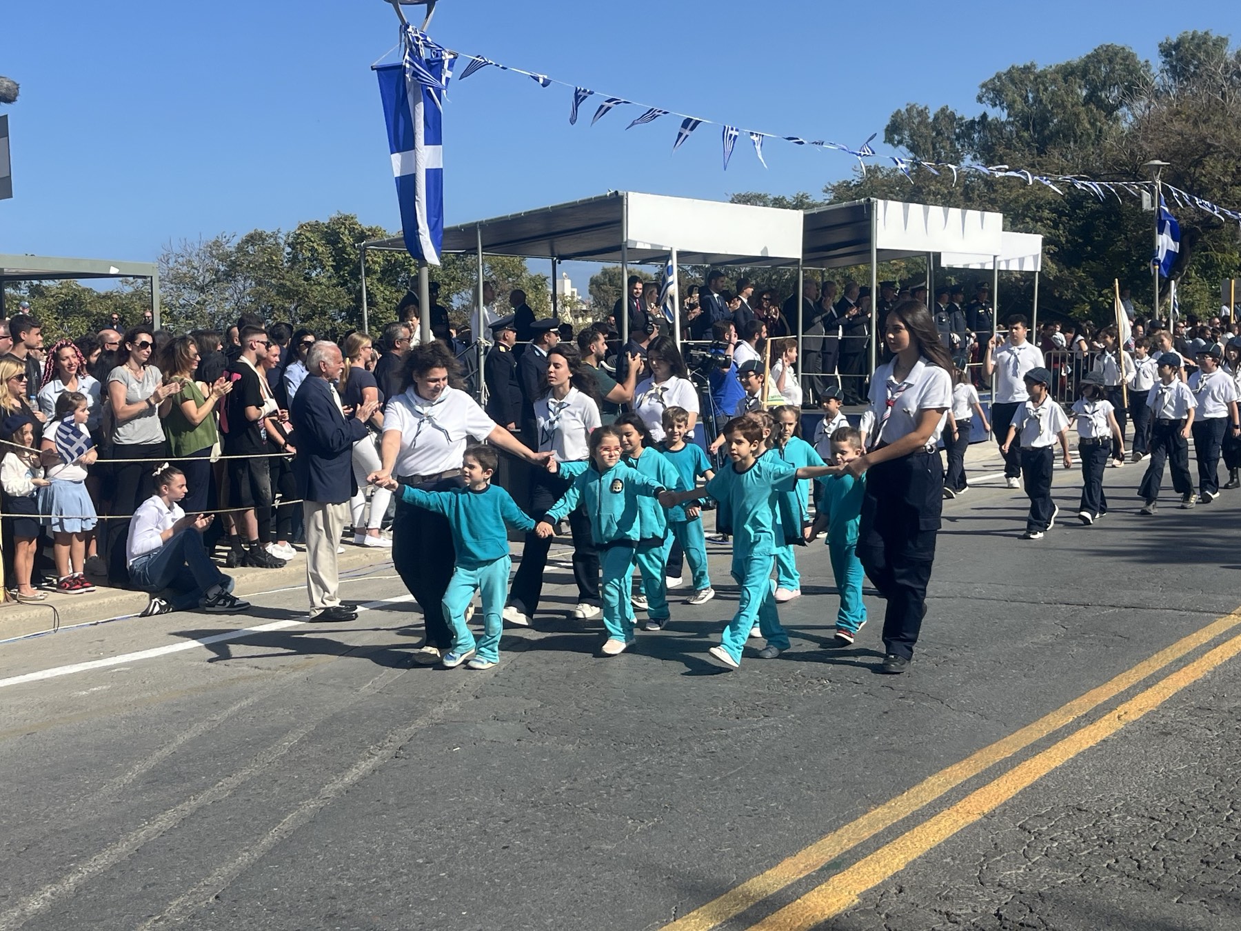 Μικροί και μεγάλοι, κρατώντας ελληνικές σημαίες παρακολούθησαν την κορύφωση των επετειακών εκδηλώσεων.