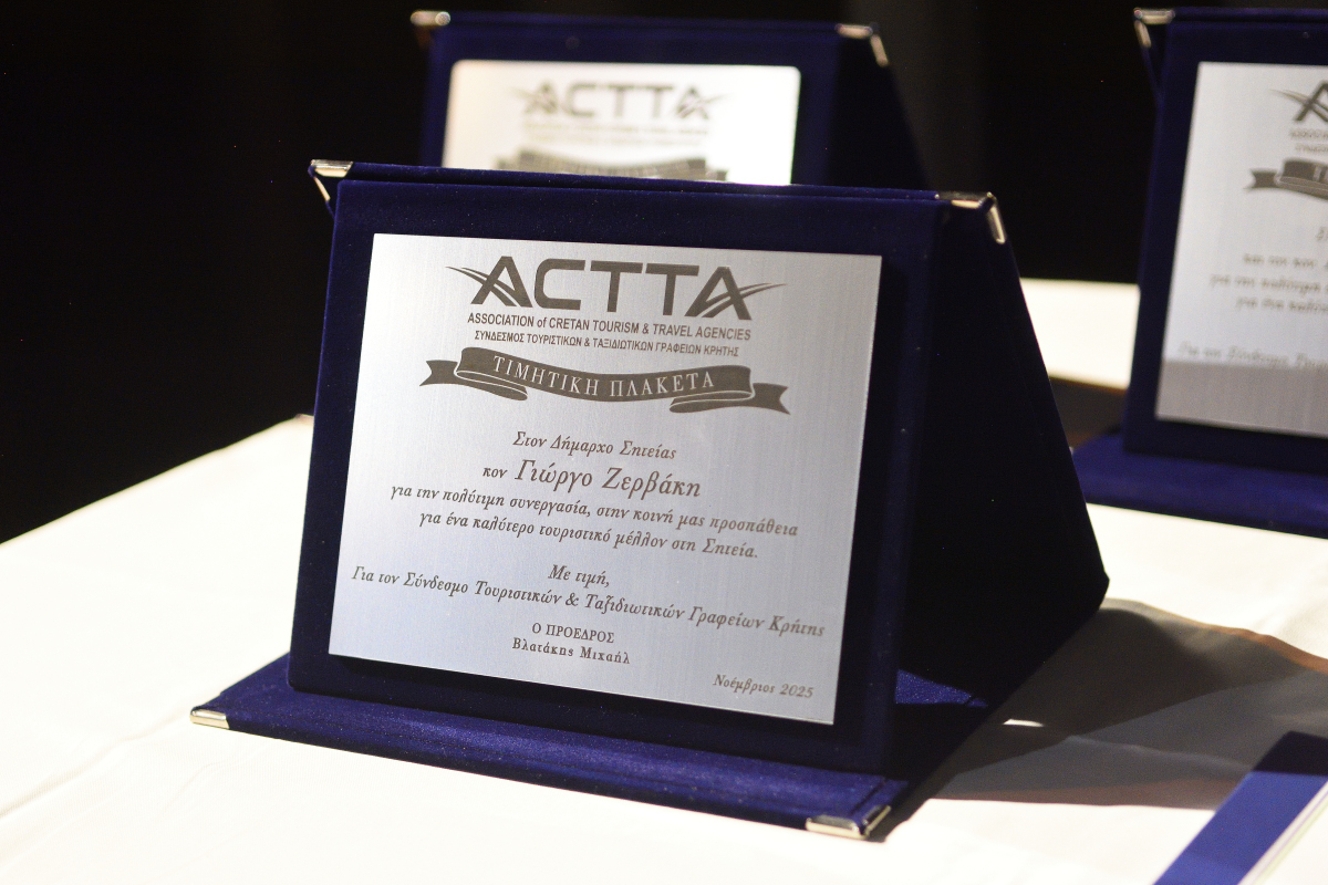 Το Σάββατο 08.11.2025 στην ΣΗΤΕΙΑ πραγματοποιήθηκε η ετήσια εκδήλωση του Συνδέσμου Τουριστικών και Ταξιδιωτικών Γραφείων Κρήτης για την βράβευση των εργαζόμενων των Μελών του Συνδέσμου, που επέδειξαν σημαντική απόδοση και ζήλο.