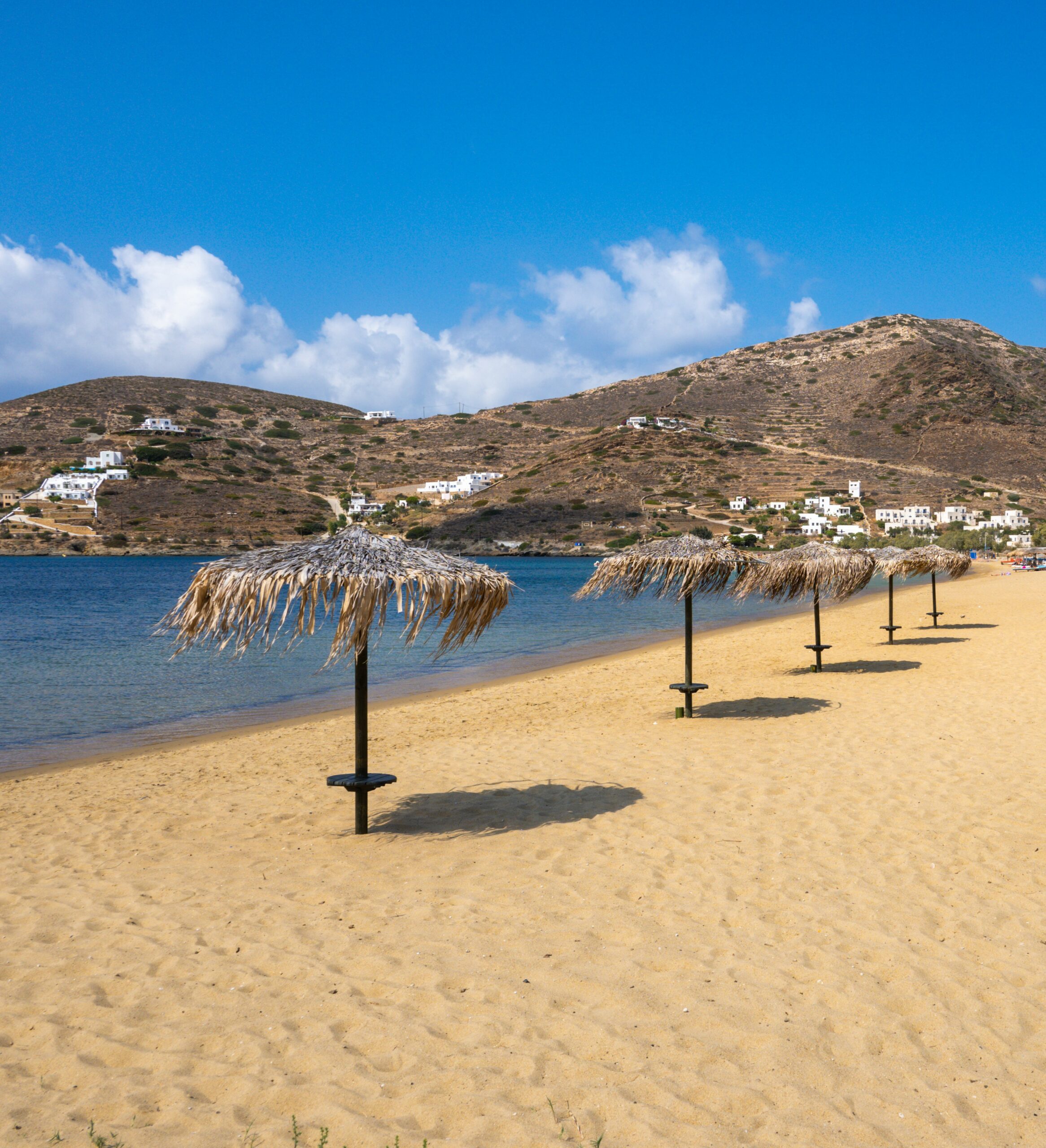 Το τοπίο των συνεχόμενων όρμων με την ξανθή άμμο -πούδρα και τα πεντακάθαρα γαλαζοπράσινα νερά είναι εντυπωσιακό και ο πανέμορφος όρμος στα νότια της Ίου έρχεται δεύτερος σε δημοφιλία μετά τον Μυλοπότα. Θα βρείτε ομπρέλες-ξαπλώστρες, beach bar, εστιατόρια και μικρά ξενοδοχεία γύρω από την ακτή. Αξίζει να πάρετε μαζί σας μάσκα για να εξερευνήσετε τον βυθό. Απέχει 19 χλμ. από τη Χώρα.