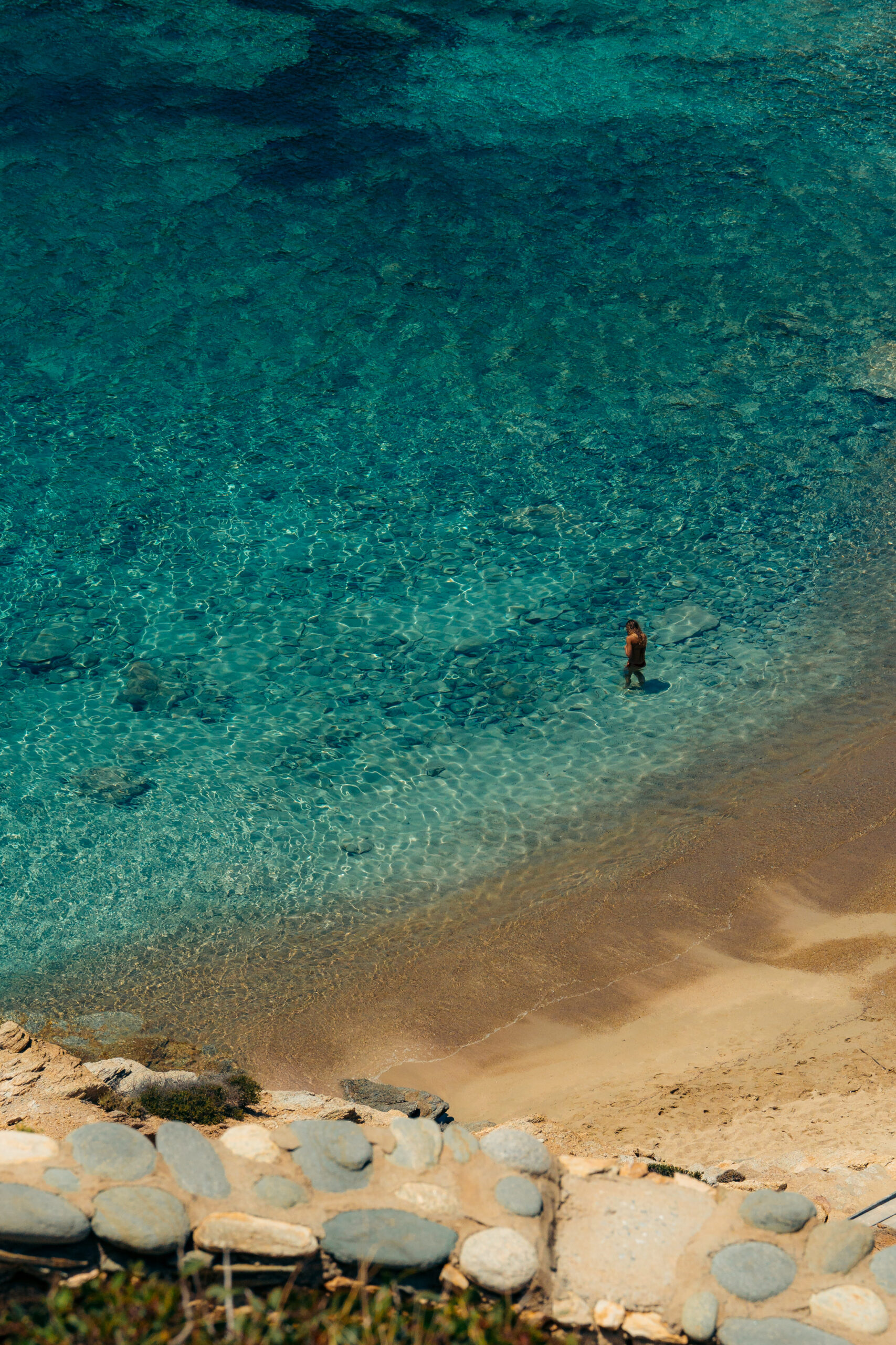 Στη δυτική ακτογραμμή, η μικρή αυτή παραλία είναι κρυμμένη σε έναν βραχώδη κόλπο. Είναι αμμώδης με γαλαζοπράσινα νερά και προσβάσιμη από δρόμο. Υποδομές δεν θα βρείτε, οπότε πάρτε μαζί σας προμήθειες και εξοπλισμό παραλίας. Προτείνουμε να μείνετε ως αργά για να χαρείτε το ηλιοβασίλεμα. Η απόσταση από τη Χώρα είναι 6 χλμ.