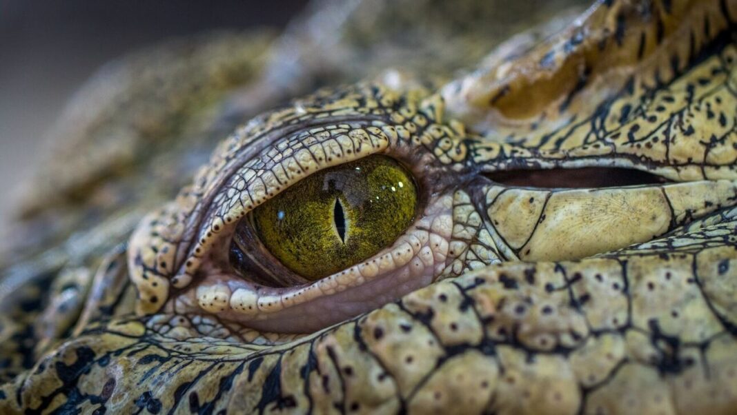 Τα δόντια του γλίστρησαν στο κεφάλι του κροκόδειλου και κατάφερε να πιάσει το βλέφαρο.