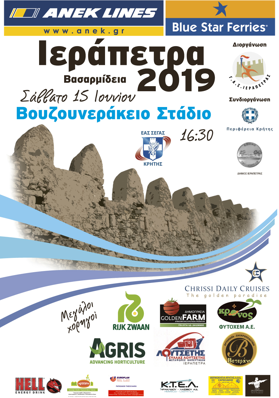 Ο Γ.Α.Σ. ΙΕΡΑΠΕΤΡΑΣ, με συνδιοργανωτές την Περιφέρεια Κρήτης, το Δήμο Ιεράπετρας και την στήριξη του Ε.Α.Σ. Σ.Ε.Γ.Α.Σ. Κρήτης, οργανώνει τους αγώνες στίβου «ΒΑΣΑΡΜΙΔΕΙΑ 2019».