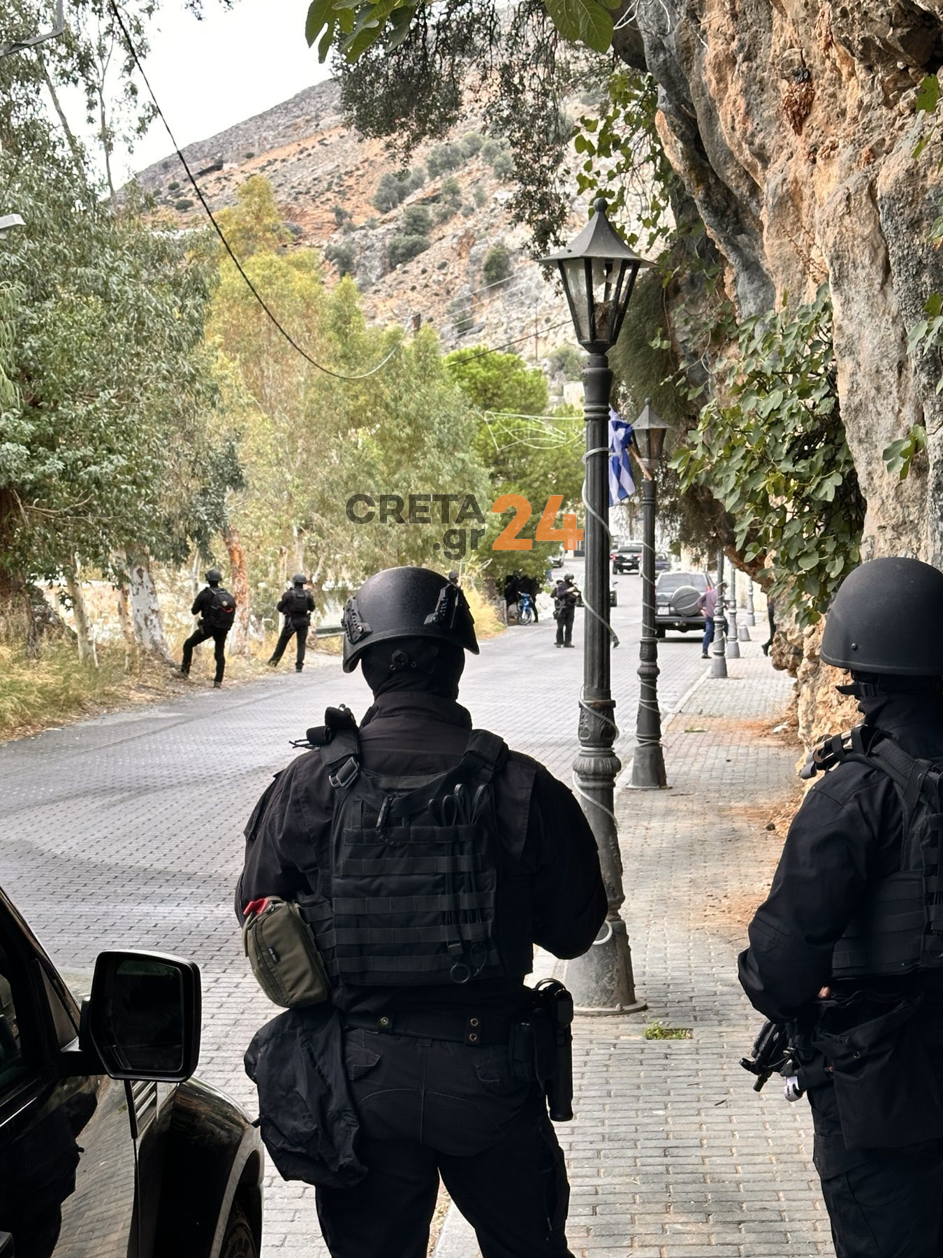 Στο σημείο βρίσκονται ισχυρές αστυνομικές δυνάμεις από όλη την Κρήτης καθώς και Γενικός Αστυνομικός Διευθυντής Κρήτης Νικόλαος Σπυριδάκης.