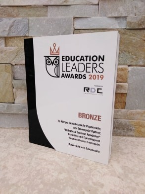 Το 3ο βραβείο, βραβείο Bronze, για την Καινοτομία στην Εκπαίδευση έλαβε το Κέντρο Εκπαιδευτικής Ρομποτικής & Επιστημών Κρήτης στον πανελλαδικό διαγωνισμό Education Leader Awards 2019 powered by RDC Informatics.