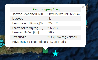 Ο σεισμός μεγέθους 4,1 βαθμών της κλίμακας Ρίχτερ σημειώθηκε νωρίς το μεσημέρι ενώ το επίκεντρο εντοπίστηκε 9 χλμ. νοτιοανατολικά της Ζάκρου.