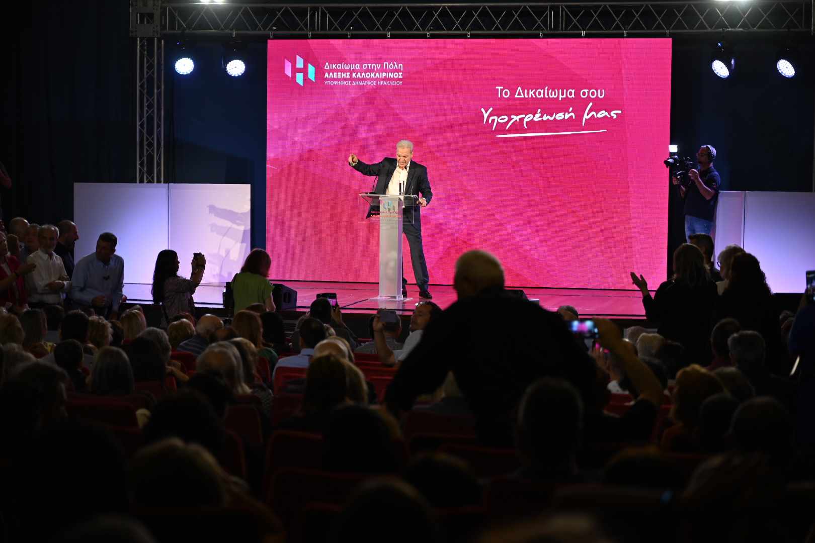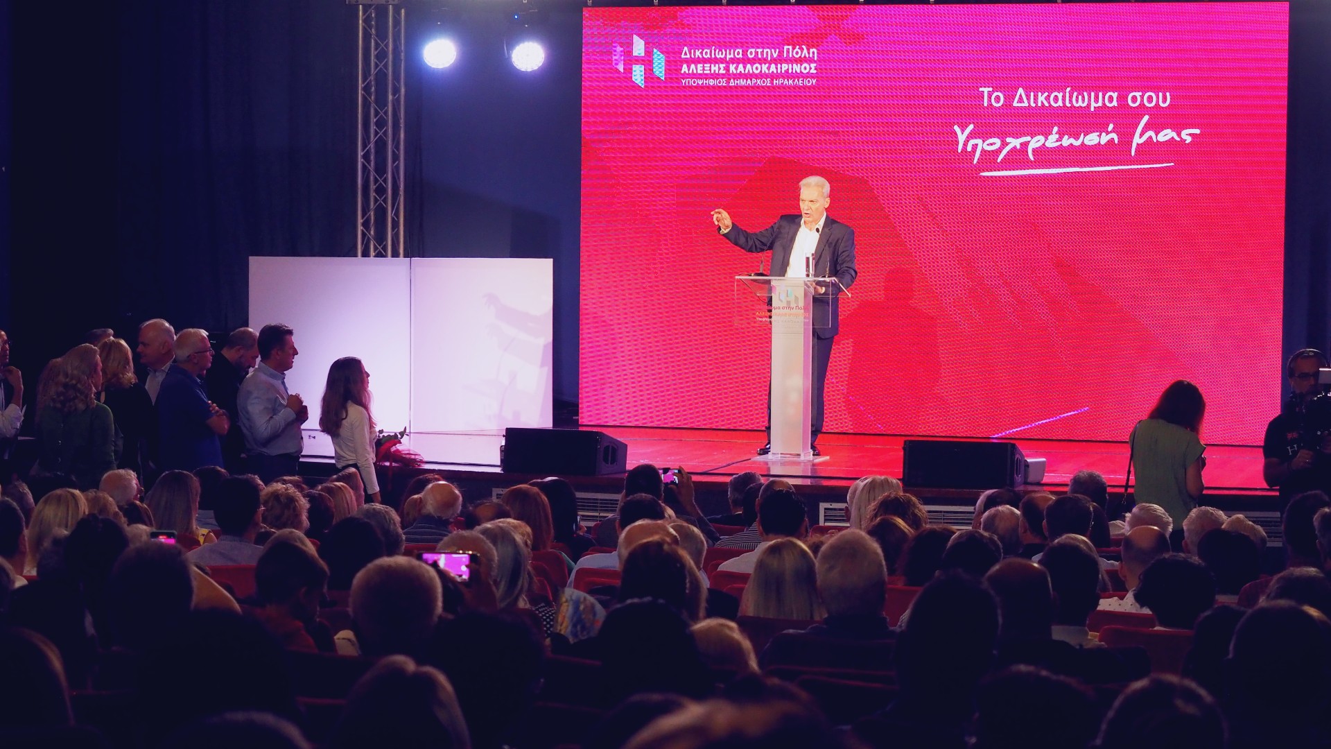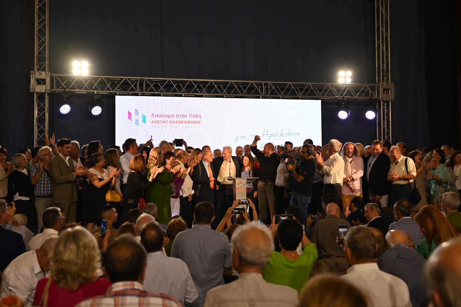 Τα συνεχόμενα χειροκροτήματα των χιλιάδων φίλων και ψηφοφόρων της παράταξης, τα συνθήματα και γενικότερα η πανηγυρική ατμόσφαιρα που δημιουργήθηκε, έδωσαν το στίγμα ότι το Ηράκλειο ψηφίζει για επόμενο δήμαρχο τον Αλέξη Καλοκαιρινό. Η παρουσία του κόσμου ήταν συγκλονιστική ακόμη και έξω από το Αστόρια προς την πλατεία Ελευθερίας που «πλημμύρισε» από ανθρώπους που έσπευσαν να υποδεχτούν τον Αλέξη Καλοκαιρινό μέσα σε κλίμα ενθουσιασμού, εκφράζοντας με τον τρόπο αυτό τη στήριξή τους στο πρόσωπό του και στην παράταξη «Δικαίωμα στην Πόλη». Άξια αναφοράς, τέλος, είναι και η παρουσία εκπροσώπων φορέων και συλλόγων.