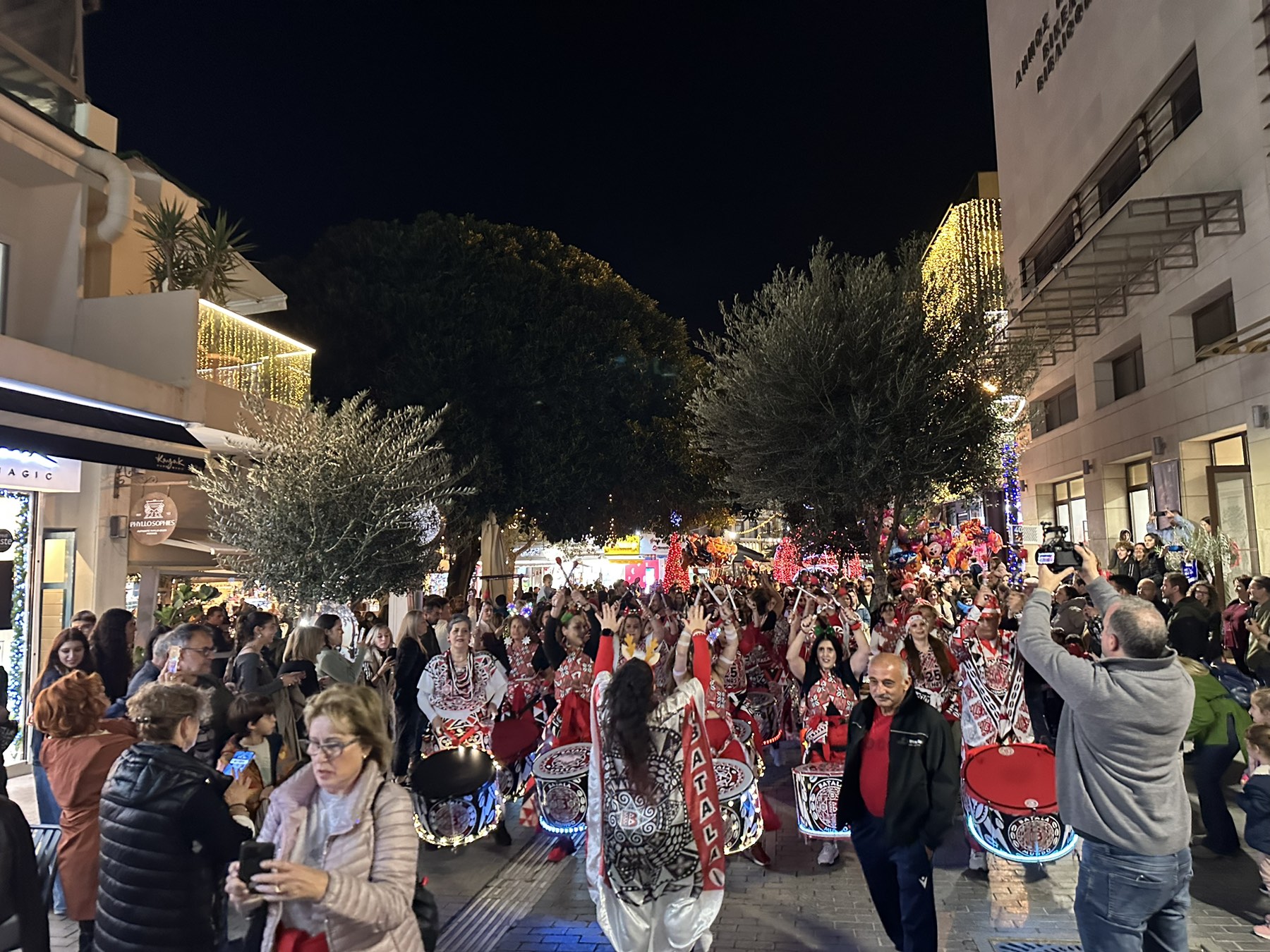 Οι εορταστικές εκδηλώσεις είχαν ξεκινήσει από τα Λιοντάρια με τη μπάντα βραζιλιάνικων κρουστών Batala Creta, με ρυθμούς Samba Reggae να καταλήγει στην Πλατεία Ελευθερίας. Τη σκυτάλη πήρε η Φιλαρμονική Ορχήστρα του Δήμου Ηρακλείου που ξεκίνησε τη μουσική της διαδρομή με Χριστουγεννιάτικες μελωδίες από τη Λότζια για να καταλήξει επίσης στην Πλατεία Ελευθερίας, υπό τη διεύθυνση της Αρχιμουσικού Ντένης Σκανδαλάκη. Η ξεχωριστή βραδιά κορυφώθηκε με τη συναυλία του αγαπημένου τραγουδοποιού Νίκου Πορτοκάλογλου, που μαζί με την Ανδριάνα Αχιτζάνοβα και τη μπάντα του, ξεσήκωσαν για δυο ώρες το κοινό.
