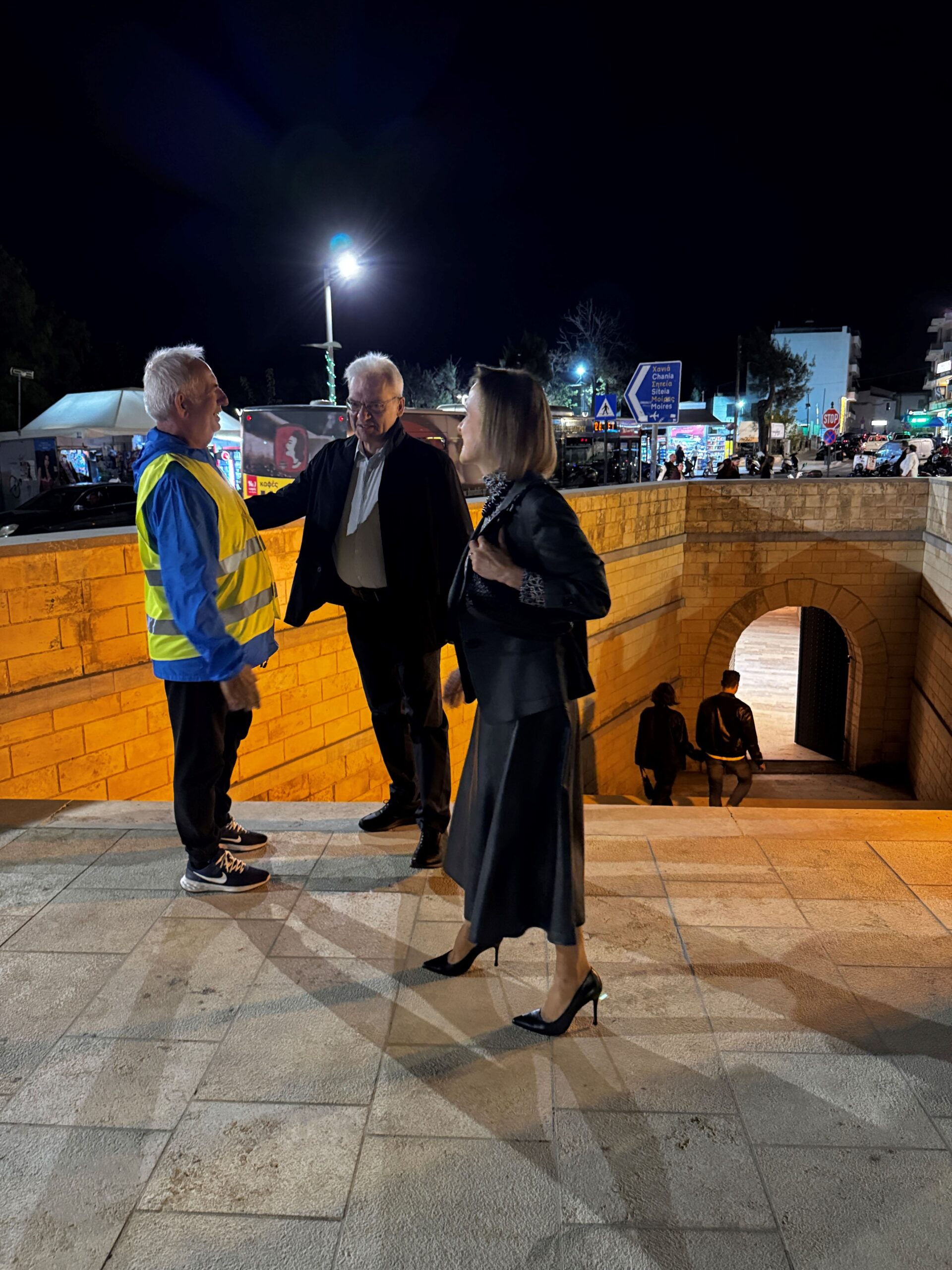 Ο Δήμαρχος Ηρακλείου επεσήμανε ότι η αλληλεγγύη πρέπει να είναι συνεχής προς τους ανθρώπους που έχουν ανάγκη, όχι μόνο την εορταστική περίοδο, έκανε ειδική αναφορά στην πύλη του Αγίου Γεωργίου που άνοιξε για το κοινό ειδικά λόγω της ημέρας και σύντομα θα αποδοθεί μόνιμα στους πολίτες. Μάλιστα και ο ίδιος κατευθύνθηκε μέσω της πύλης από την λεωφόρο Ικάρου στην πλατεία Ελευθερίας και μίλησε με κόσμος που εξέφρασε τον θαυμασμό του για το μνημείο: «Στις γιορτές να είμαστε με ανοικτή καρδιά όχι μόνο για τους συγγενείς και τους φίλους αλλά και για τους πολλούς ανθρώπους που έχουν ανάγκη, που καμιά φορά μελαγχολούν περισσότερο. Η αλληλεγγύη πρέπει να είναι μια σταθερά στη ζωή μας. Τώρα όμως είμαστε στις γιορτές. Ήρθε η στιγμή να ανάψουμε το Χριστουγεννιάτικο δέντρο και όσοι από εσάς ήδη περιπλανήθηκαν στην πλατεία προφανώς θα είδαν και την πύλη του Αγίου Γεωργίου που τη συντηρήσαμε ολικά και την ανοίξαμε. Όπως θα ανοίξουμε όλες τις πύλες και όλες τις στοές, τώρα που τα Τείχη, μετά από πολλά χρόνια, πέρασαν με έναν οργανωμένο και δυναμικό τρόπο ξανά στην πόλη, ξανά στον Δήμο μας».