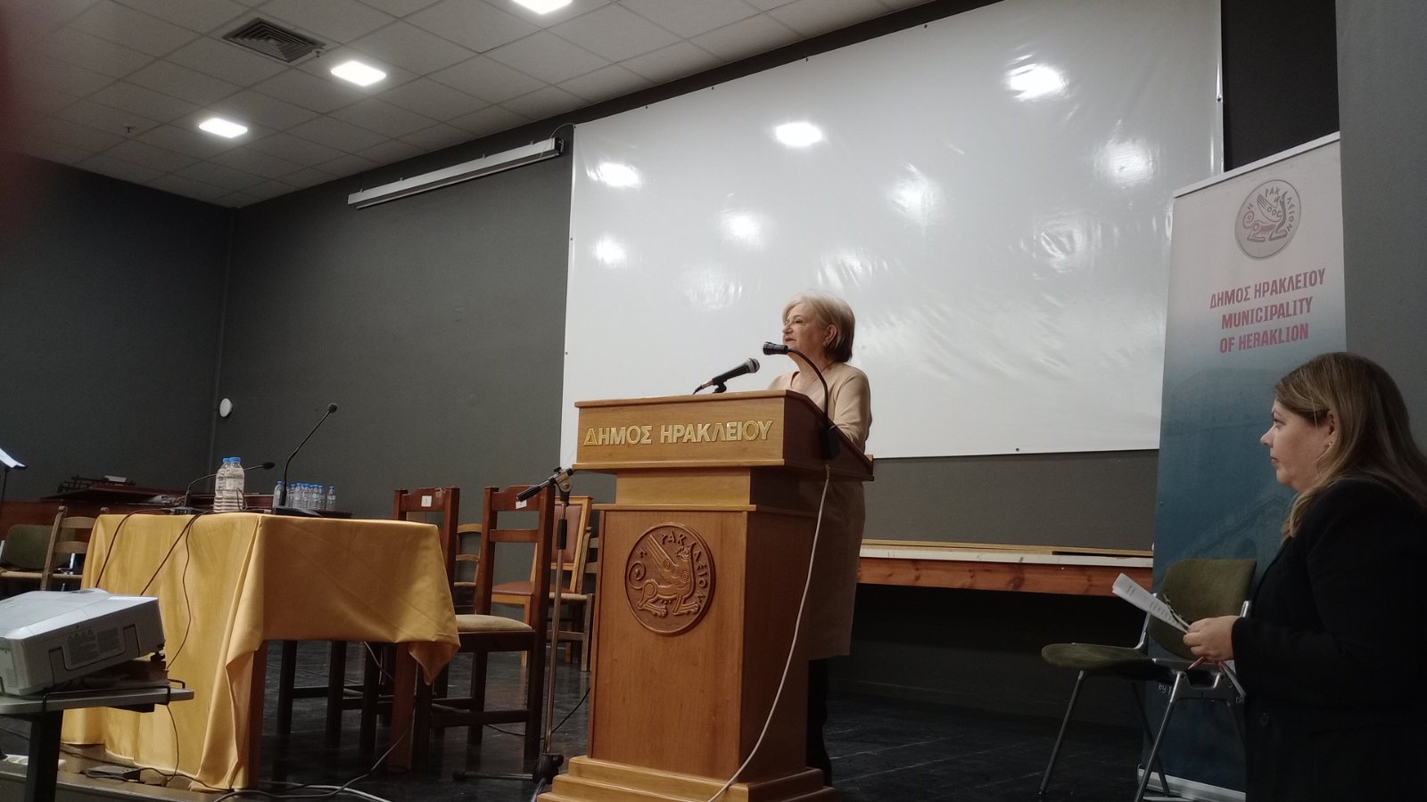 Στην εκδήλωση παραβρέθηκαν οι Αντιδήμαρχοι Τάσος Τσατσάκης, Ρένα Παπαδάκη, η Αντιπρόεδρος της ΔΕΠΑΝΑΛ Μάρα Παναγιωτάκη, η πρόεδρος της 1ης Δημοτικής Κοινότητας Θεοδοσία Αγγελιδάκη, ο εκπρόσωπος της Αρχιεπισκοπής Κρήτης Αρχιμανδρίτης Κύριλλος, η επικεφαλής της παράταξης «Ηράκλειο Για Σένα» Μαρία Καναβάκη, ο πρόεδρος του Δικηγορικού Συλλόγου Ηρακλείου Νίκος Λογοθέτης, πολλά μέλη του συλλόγου και πλήθος κόσμου. Χαιρετισμό απηύθυναν η Αντιδήμαρχος Εθελοντισμού Φιλαρέτη Δαφέρμου – Χρονάκη και η Εντεταλμένη Σύμβουλος Ισότητας Κατερίνα Δουλγεράκη, που διάβασε και ένα συγκινητικό γράμμα κακοποιημένης γυναίκας. Η κεντρική ομιλία έγινε από τον δικηγόρο Απόλλωνα Καλογερόπουλο με θέμα «Νομική Προστασία & κοινωνική στήριξη της κακοποιημένης γυναίκας». Επίσης έγινε παρουσίαση από την Υπαστυνόμο Α’ Δήμητρα Λιάπη για την «Ενδοοικογενειακή Βία».
