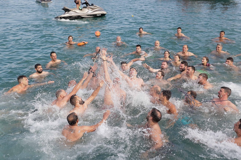 Και φέτος, σύμφωνα με το έθιμο, μεγάλος ήταν ο αριθμός των κολυμβητών που έπεσαν στη θάλασσα να πιάσουν το σταυρό ενώ ξεχωριστή ατμόσφαιρα στο χώρο της τελετής δημιούργησε πλήθος σκαφών.