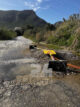 «Κίνδυνος λόγω εκτελούμενων έργων στην οδό», αναγράφεται στις δύο πινακίδες που βρίσκονται πεσμένες στο δρόμο και πλέον αποτελούν οι ίδιες κίνδυνο για τους διερχόμενους οδηγούς.
