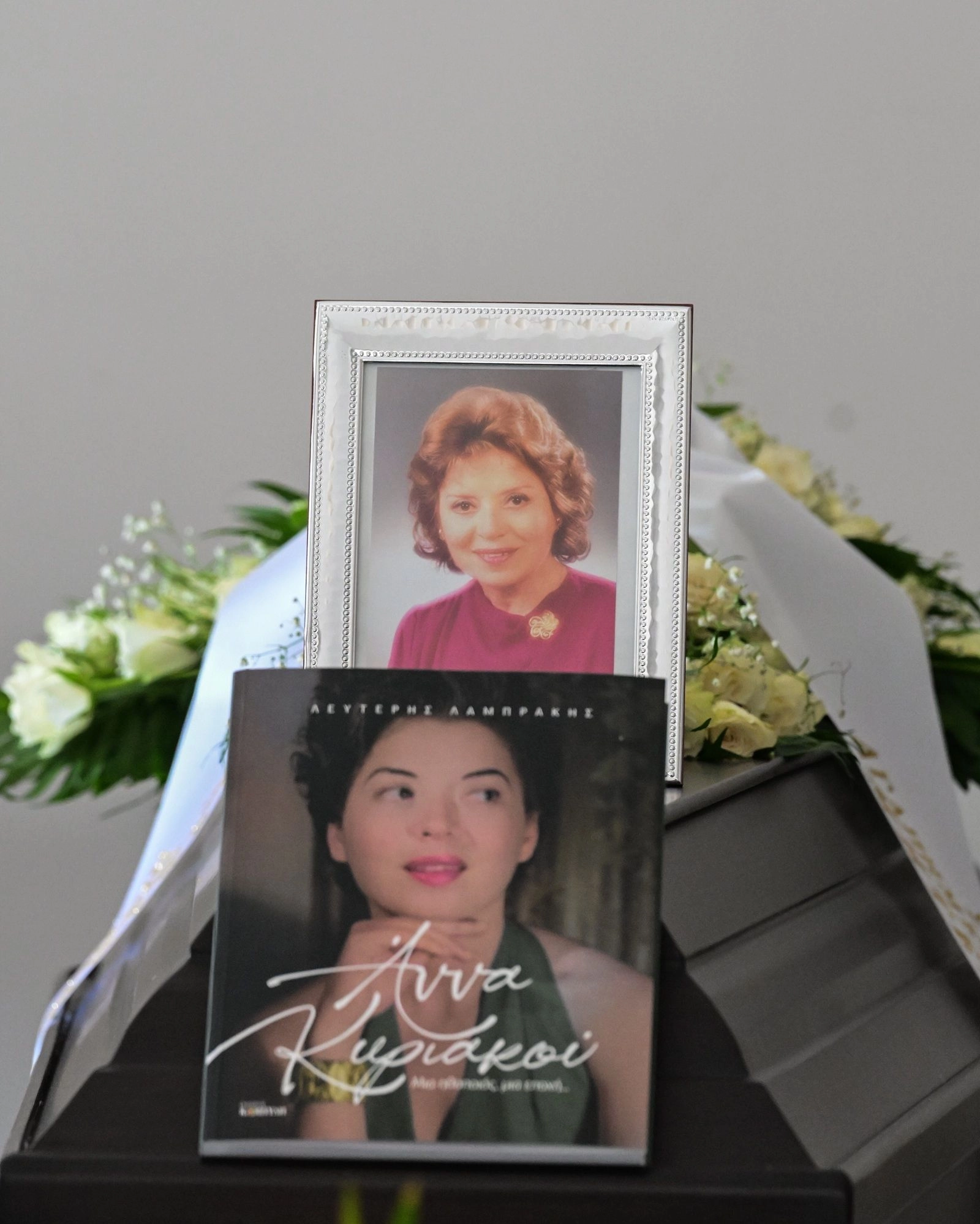 Σε κλίμα βαθιάς συγκίνησης πραγματοποιήθηκε στο Α‘ Nεκροταφείο Αθηνών η κηδεία της αγαπημένης ηθοποιού Άννας Κυριακού, που έφυγε από τη ζωή σε ηλικία 95 ετών. Συγγενείς, φίλοι και συνάδελφοι αποχαιρέτησαν τη θρυλική “Μπεμπέκα” από τις “Τρεις Χάριτες”.