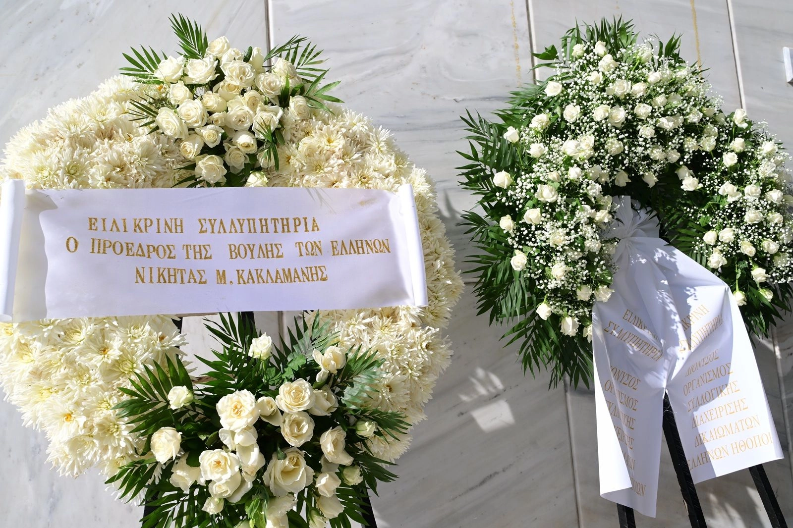 Στεφάνι απέστειλε και ο πρόεδρος της Βουλής, Νικήτας Κακλαμάνης.