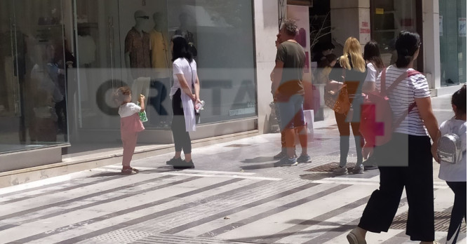 Το Creta24 βρέθηκε στο κέντρο της πόλης, εκεί που αρκετοί πολίτες στέκονταν σε ουρές έξω από τα καταστήματα, τηρώντας αποστάσεις και φορώντας μάσκες.