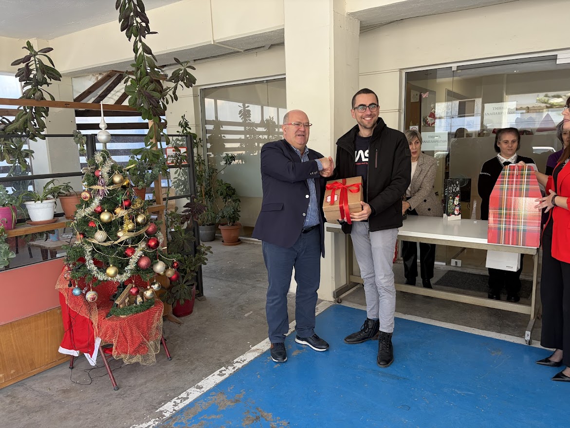Ο Διευθυντής, κ. Εμμανουήλ Μπελαδάκης, ανέλαβε και φέτος τον ρόλο του Άγιου Βασίλη, μοιράζοντας τα δώρα και στέλνοντας το δικό του μήνυμα: «Στιγμές σαν τη σημερινή υπενθυμίζουν σε όλους τη σημασία των ανθρωπίνων σχέσεων και του πνεύματος συνεργασίας μεταξύ των εργαζομένων. Μας δίνουν ελπίδα και μας γεμίζουν αισιοδοξία για τη νέα χρονιά. Εύχομαι σε όλους καλές γιορτές και ένα δημιουργικό και ευτυχισμένο νέο έτος».