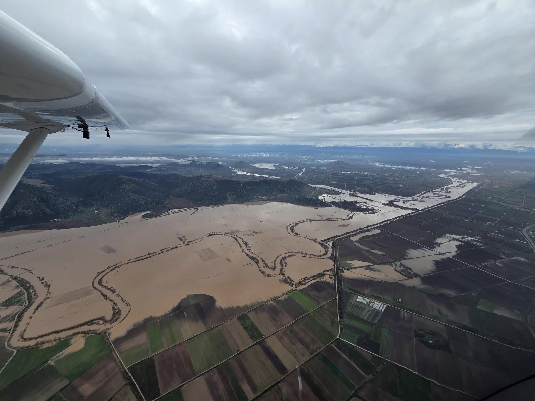 Ο θεσσαλικός κάμπος για άλλη μια φορά πνίγηκε και αυτό αποτυπώνεται μέσα από εικόνες που τραβήχτηκαν από αεροπλάνο, που πετούσε πάνω από τον κάμπο.