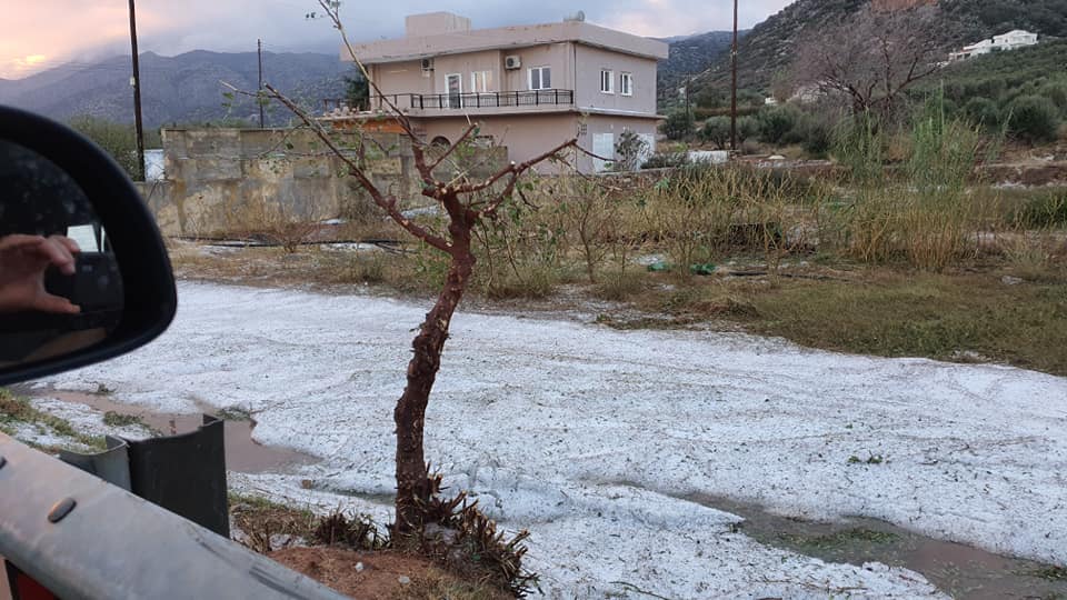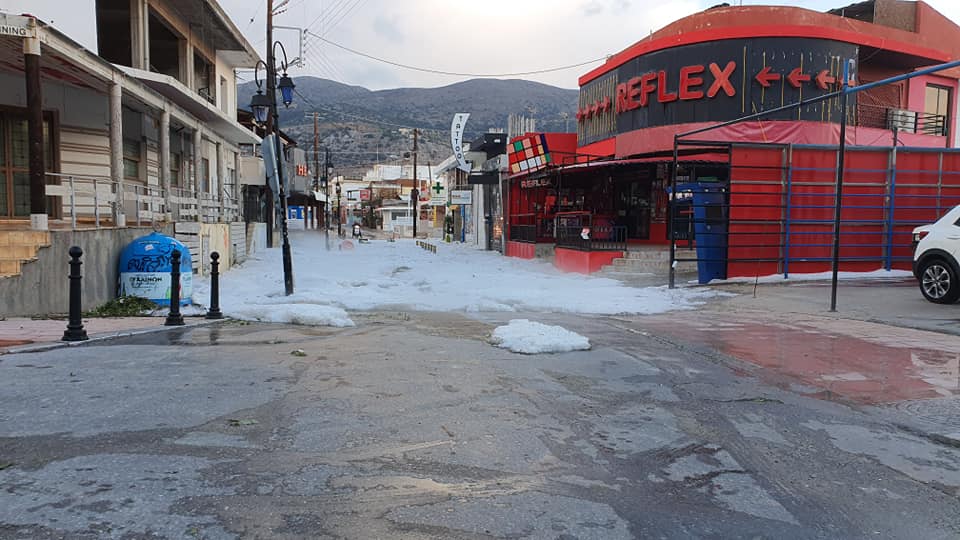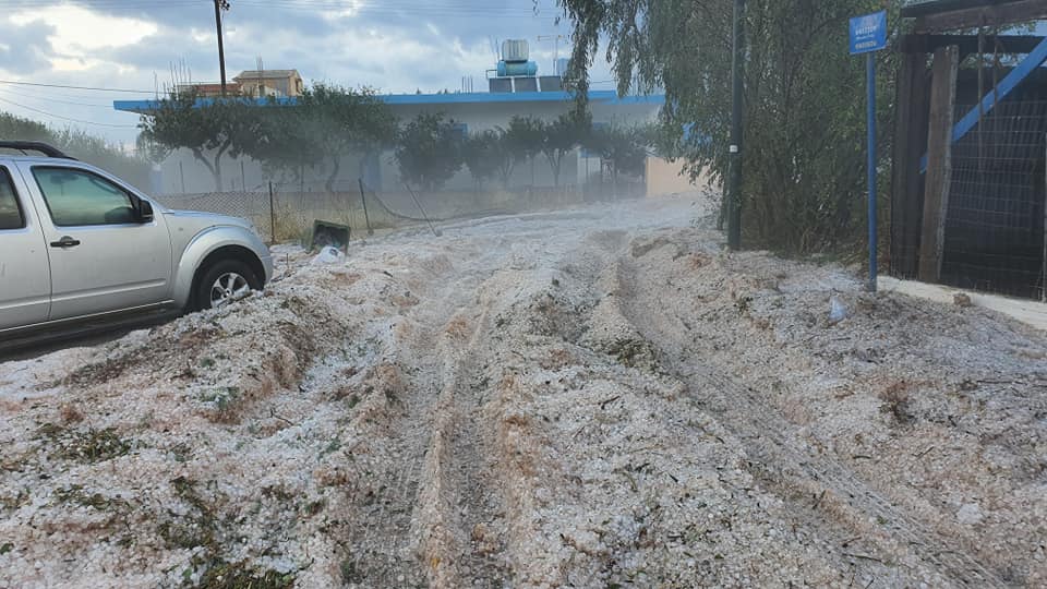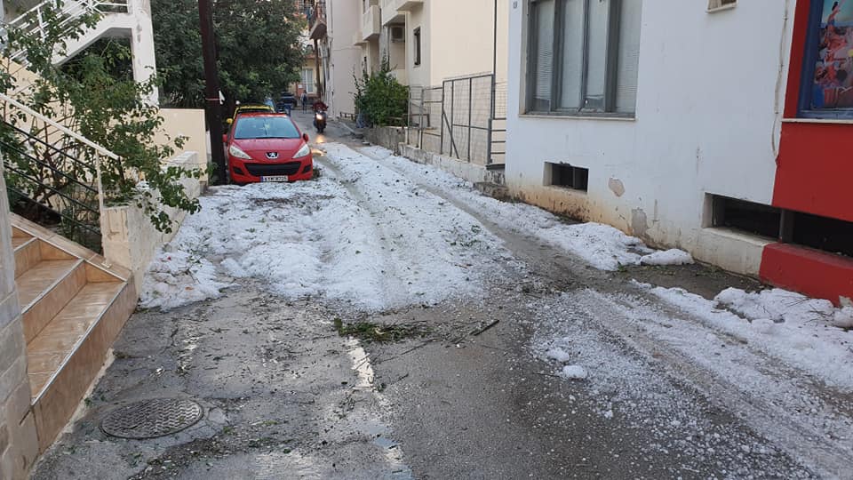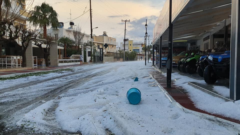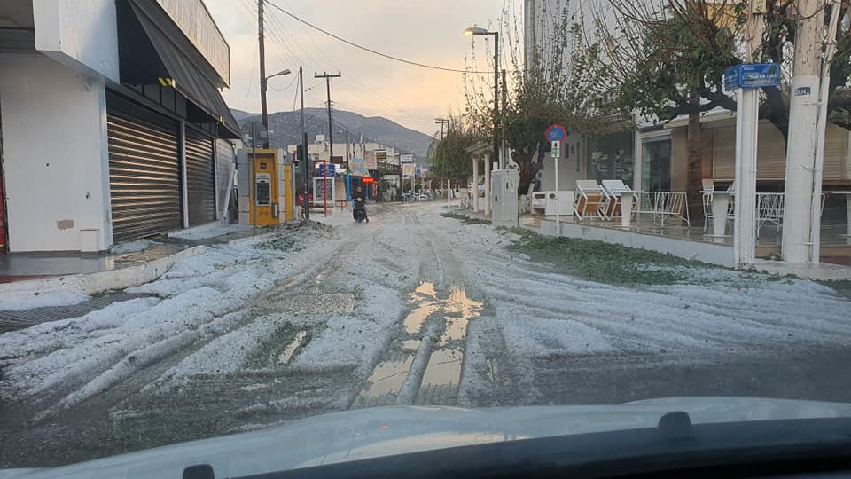 «Βουνά» από πάγο έχουν σχηματιστεί μετά τη σφοδρή χαλαζόπτωση που έπληξε τα μάλια και οι δρόμοι θυμίζουν κάτι από …Δεκέμβρη.