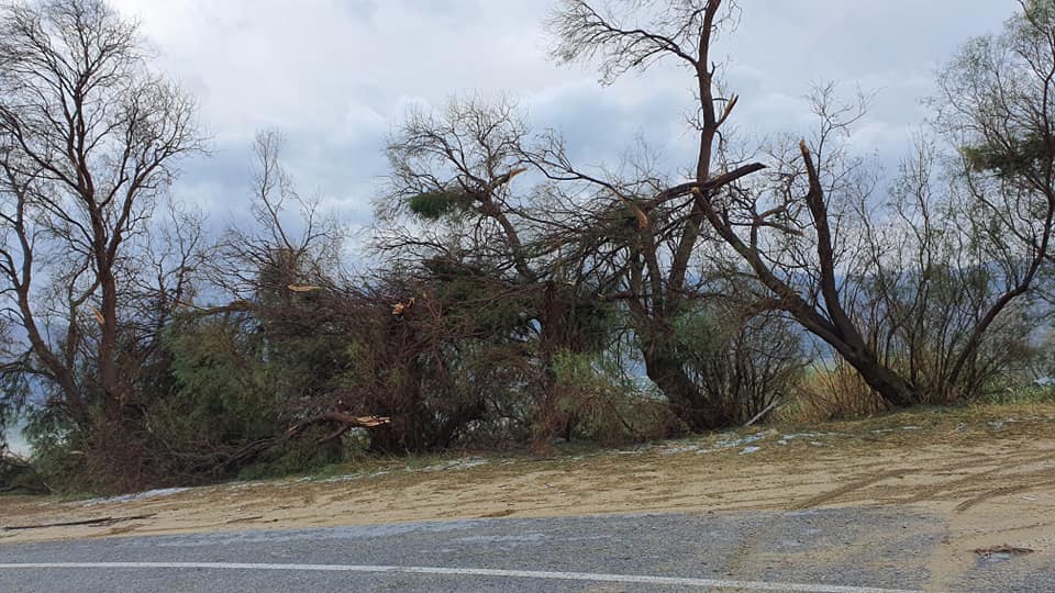 Ζημιές υπέστησαν και επιχειρήσεις της περιοχής ενώ η κακοκαιρία ξερίζωσε και δέντρα.