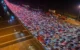 Πλάνα από drone κατέγραψαν δεκάδες αυτοκίνητα να κινούνται σε πολλαπλές λωρίδες για να φτάσουν στις μπάρες των διοδίων, σχηματίζοντας τελικά ουρά τεσσάρων λωρίδων.