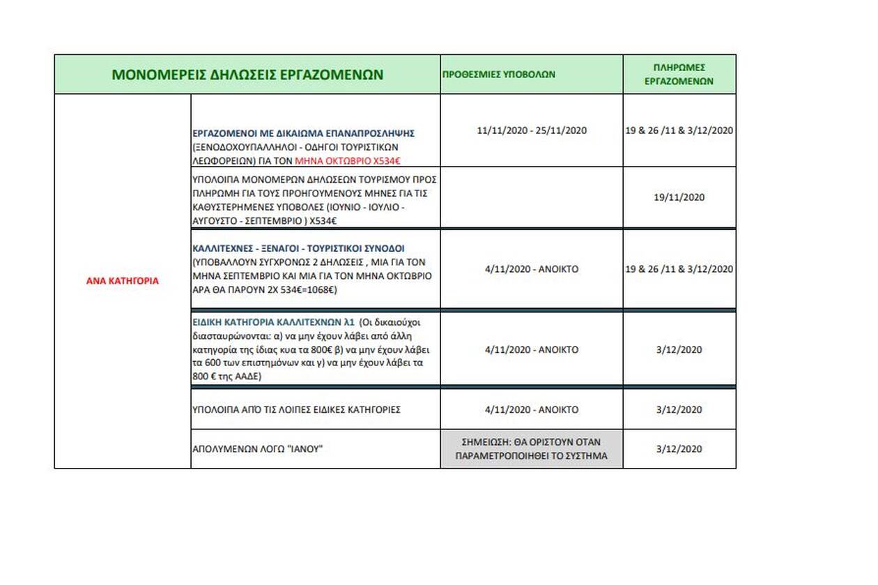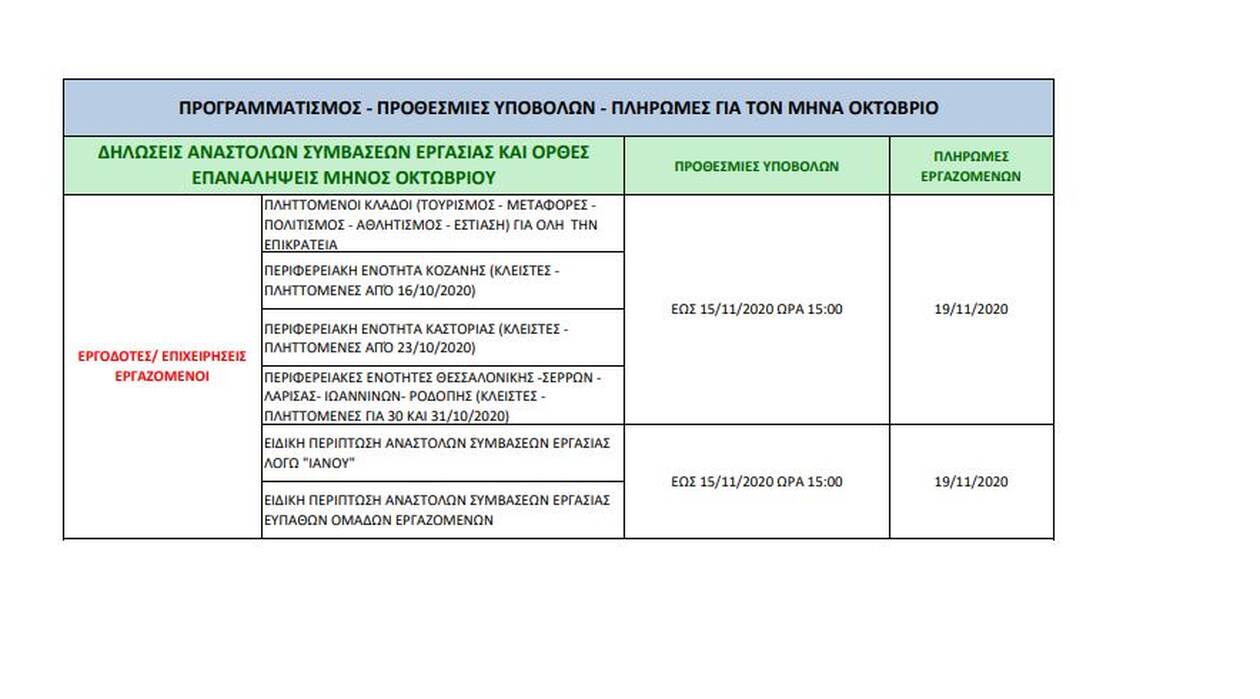 – τις δηλώσεις αναστολών συμβάσεων εργασίας και ορθές επαναλήψεις μηνός Οκτωβρίου,