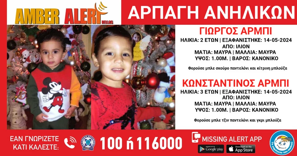 Ο φορέας προχώρησε άμεσα στην ενεργοποίηση του μηχανισμού Amber Alert Hellas, κατόπιν εισαγγελικής εντολής, καθώς συντρέχουν πολύ σοβαροί λόγοι που θέτουν τη ζωή των παιδιών σε κίνδυνο.
