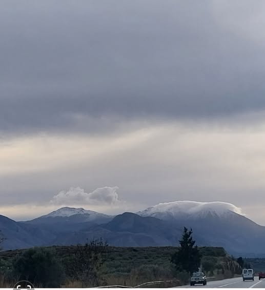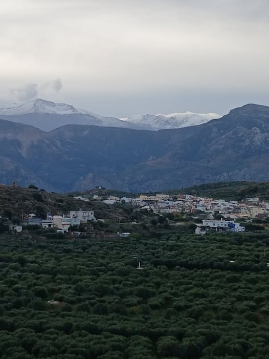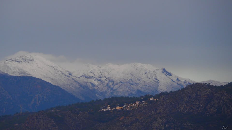 Στα λευκά ντύθηκαν και τα λασιθιώτικα βουνά, όπου οι πρώτες «άσπρες πινελιές» δημιουργούν ένα εντυπωσιακό σκηνικό.