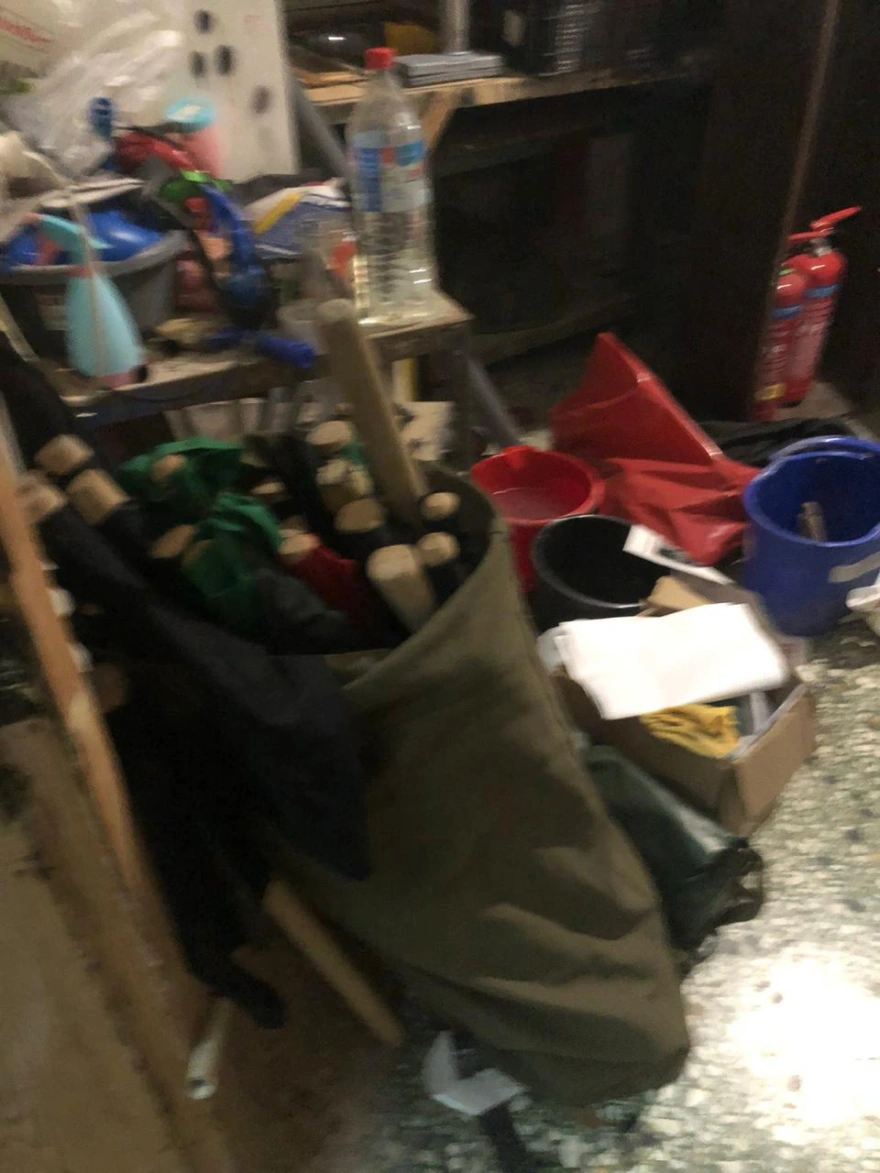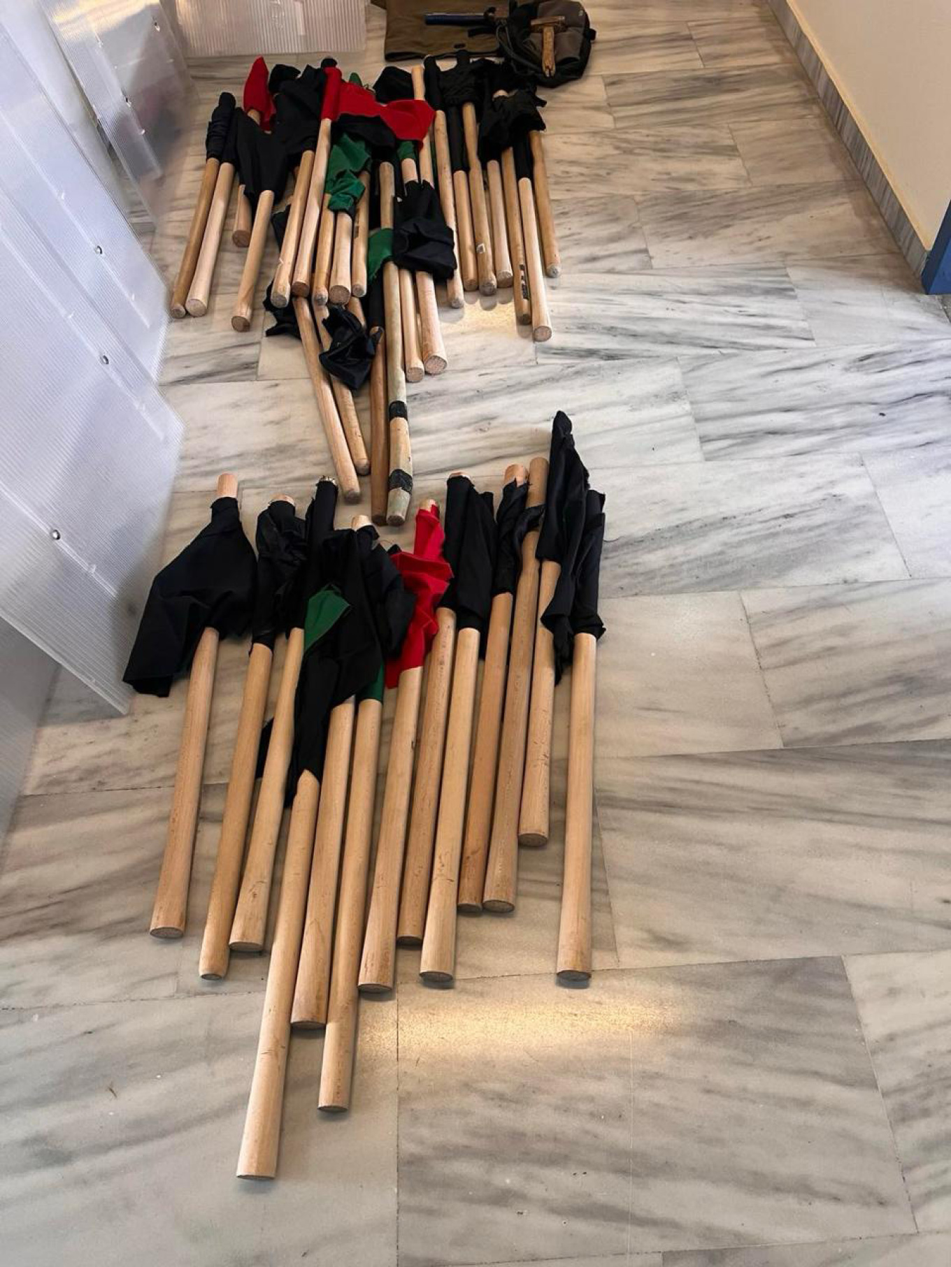 Στο κτήριο που τελούσε υπό κατάληψη βρέθηκαν και κατασχέθηκαν καδρόνια, σφυριά και αντιασφυξιογόνες μάσκες. Δείτε φωτογραφίες