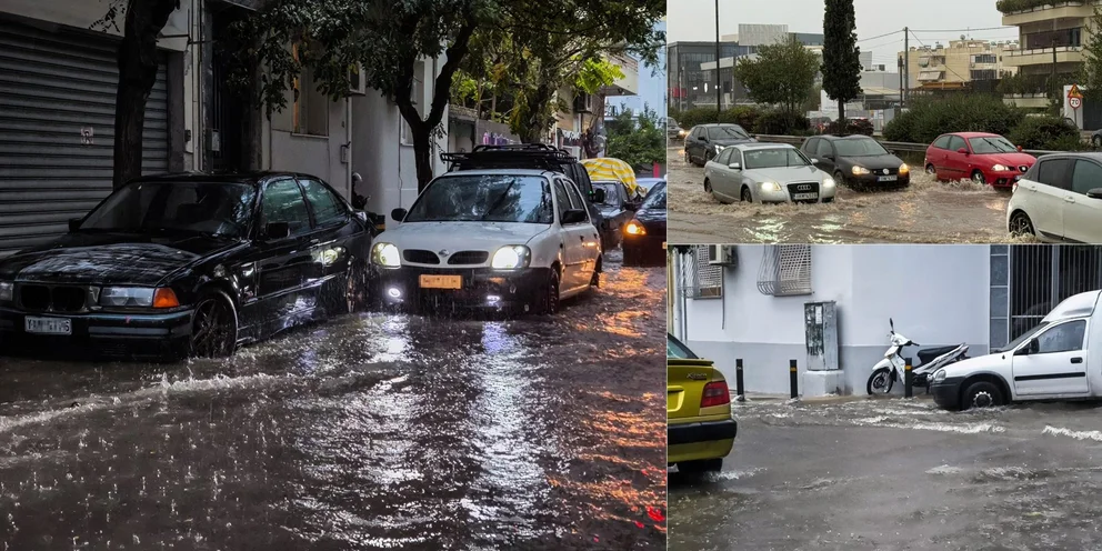Ποτάμια οι δρόμοι από την κακοκαιρία στην Αττική