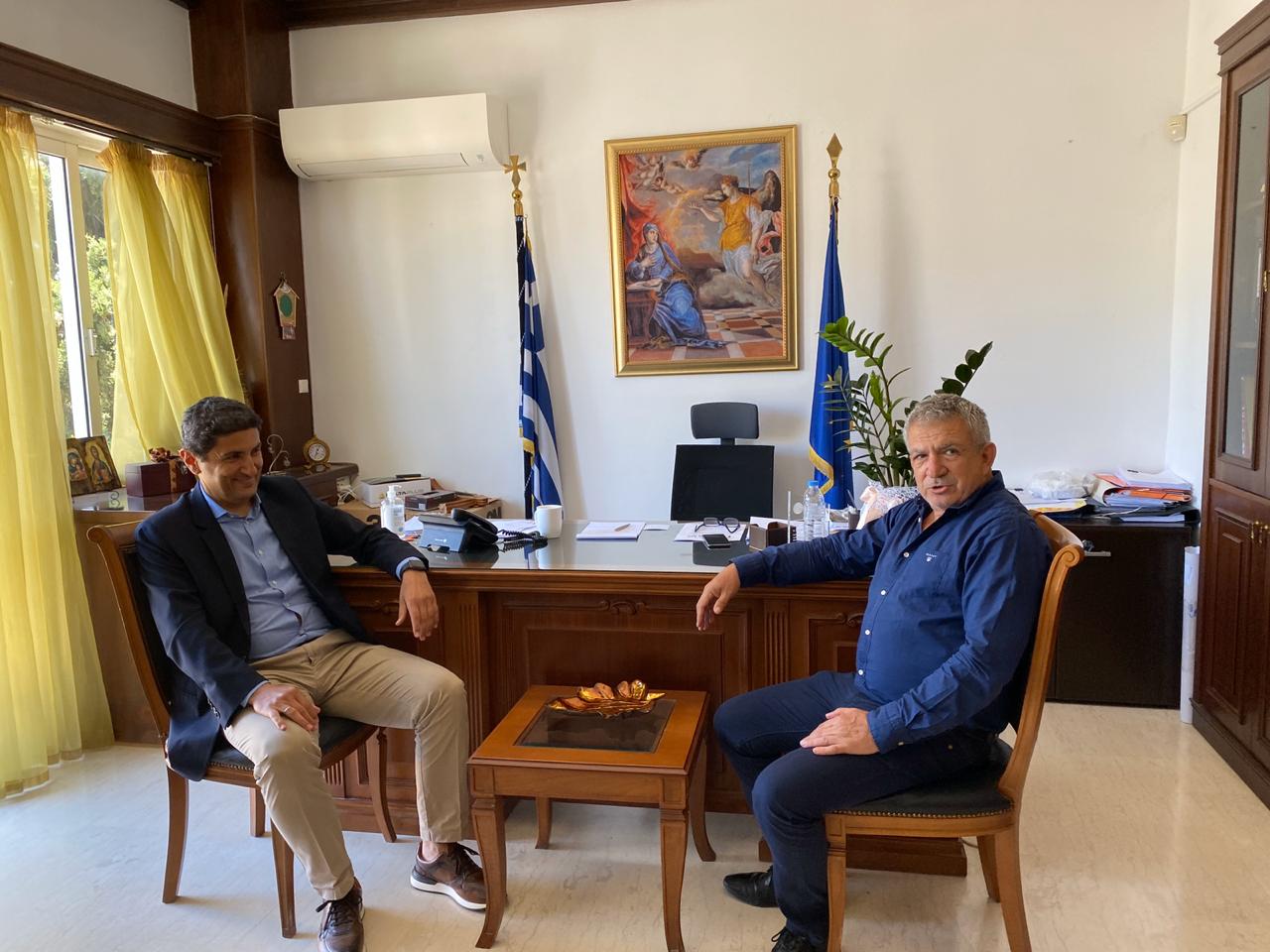 Συνάντηση με το Δήμαρχο Φαιστού κ. Γρηγόρη Νικολιδάκη και όλο το δημοτικό συμβούλιο, είχε σήμερα ο Υφυπουργός Αθλητισμού κ. Λευτέρης Αυγενάκης, στο πλαίσιο της στενής συνεργασίας που αναπτύσσει με τους δήμους του Ν. Ηρακλείου και με τις τοπικές κοινωνίες ώστε να εξεταστούν πιο συγκροτημένα θέματα αθλητισμού, αναπτυξιακά θέματα, τοπικά ζητήματα.