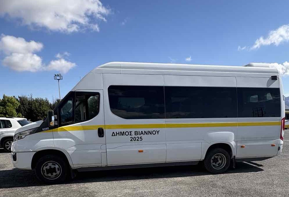 Ένα νέο λεωφορείο παρέδωσε σήμερα η Δημοτική Αρχή Βιάννου στο Κέντρο Ημερήσιας Φροντίδας Ηλικιωμένων, δίνοντας οριστική λύση στο πρόβλημα της μεταφοράς των ηλικιωμένων συμπολιτών από και προς το ΚΗΦΗ.