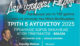 Την Τρίτη 5 Αυγούστου, στον προαύλιο χώρο της Εκκλησίας του Αγίου Πνεύματος στα Μάλια, στις 9:00 μ.μ., παρουσιάζεται…