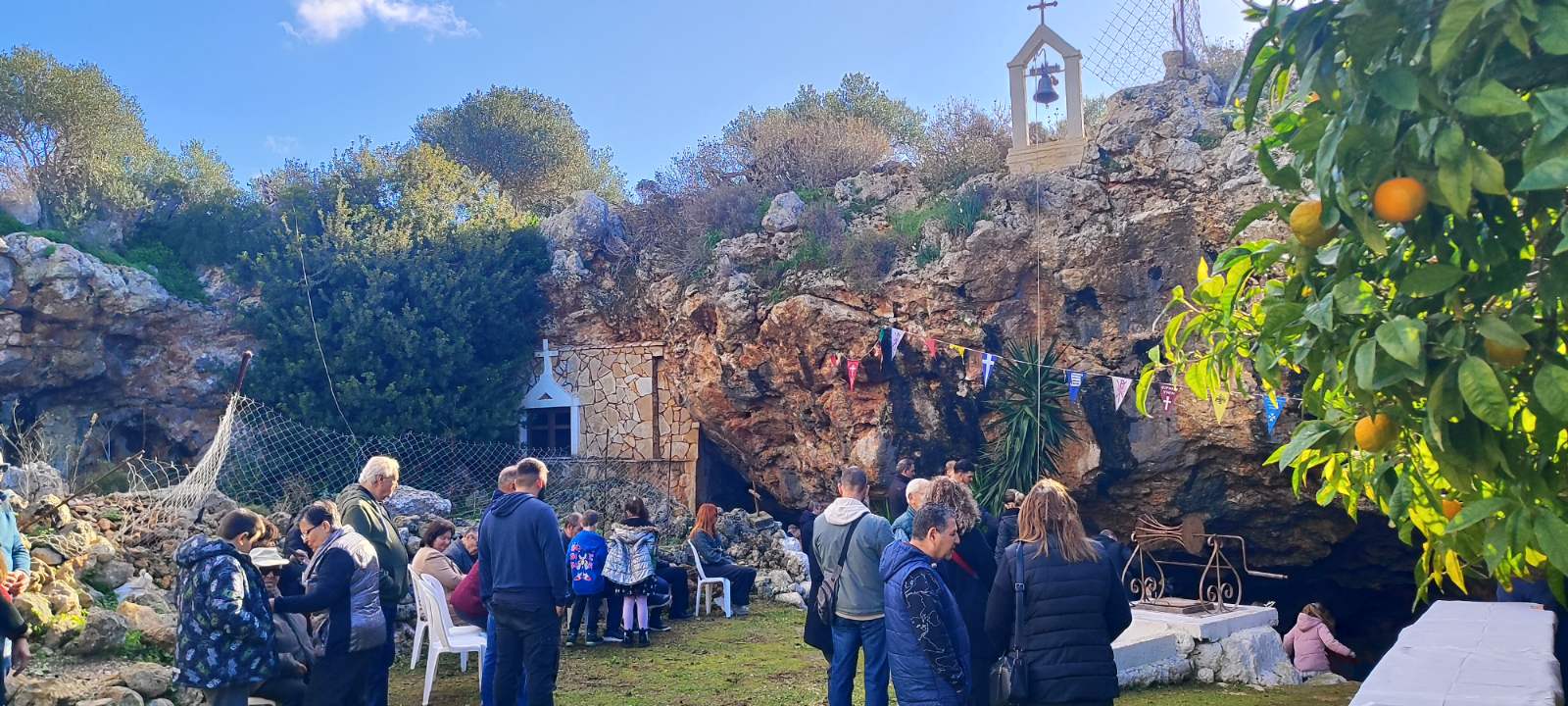 Στο ιδιαίτερης ιστορικής και πνευματικής σημασίας Σπήλαιο του Αγίου Αντωνίου, τελέστηκαν Όρθρος και Θεία Λειτουργία, με αφορμή την εορτή της Συνάξεως της Υπεραγίας Θεοτόκου, σε κατανυκτικό κλίμα που παραπέμπει στο ταπεινό σπήλαιο της Γεννήσεως του Χριστού.