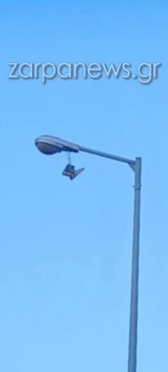 Κίνδυνος ατυχήματος ελλοχεύει στην έξοδο του δρόμου από Χανιά προς Γαλατά, καθώς ένας μηχανισμός από κολόνα ηλεκτροφωτισμού κρέμεται στον αέρα.