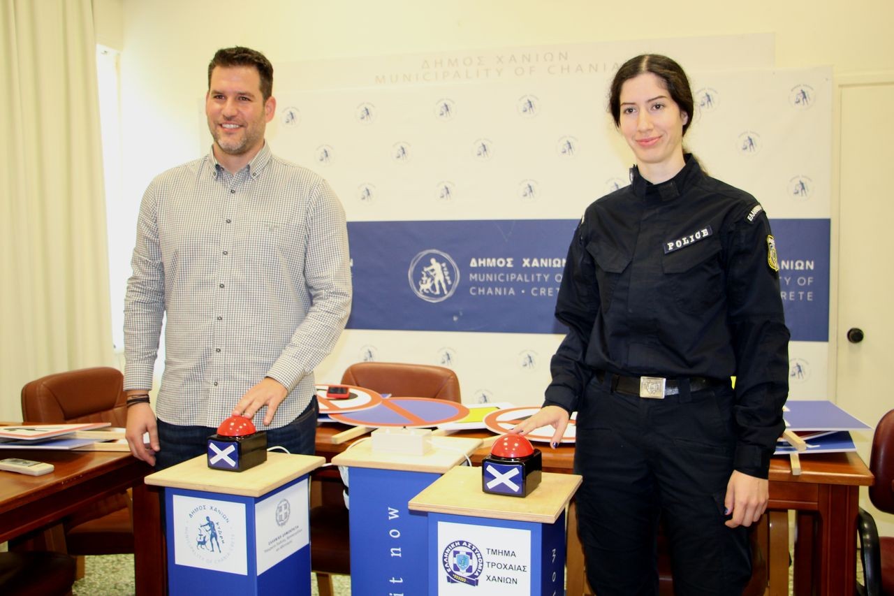 Από την πλευρά του ο Υποδιοικητής της Τροχαίας Χανίων, Υπαστυνόμος Ά, Λαμπράκης Φώτιος, υπογράμμισε: «Ως Τροχαία Χανίων στεκόμαστε δίπλα σε κάθε προσπάθεια, η οποία έχει ως στόχο την πρόληψη και την ενημέρωση σχετικά με τα θέματα της Τροχαίας, την πρόληψη των τροχαίων ατυχημάτων και την εξασφάλιση περισσότερης ασφάλειας στους δρόμους. Σήμερα παραλαμβάνουμε αυτό το υλικό, το οποίο θα δώσει στους μαθητές την ευκαιρία, μέσα από ένα πιο βιωματικό τρόπο να κατανοήσουν καλύτερα το αντικείμενο της Τροχαίας, να μπορέσουν να ενημερωθούν και να διδαχθούν όλα εκείνα, που συμβάλλουν στην οδική ασφάλεια και να μπορέσει να δημιουργήσει καλύτερους πολίτες».