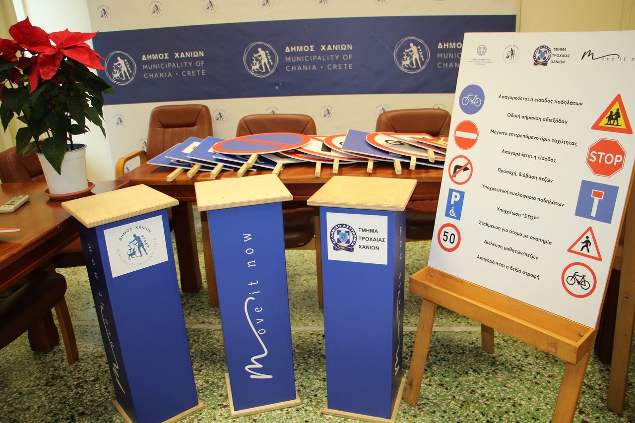 Για το σκοπό του προγράμματος έκανε λόγο η κα. Νεμπαυλάκη επισημαίνοντας πως «δεν είναι άλλος από το να ενισχύσουμε την κυκλοφοριακή αγωγή και να καλλιεργήσουμε από νωρίς στα παιδιά την κουλτούρα της βιώσιμης κινητικότητας». Σήμερα παραδίδουμε στην Τροχαία Χανίων το εκπαιδευτικό υλικό της πρωτοβουλίας Move It Now, που παίζει σπουδαίο εκπαιδευτικό ρόλο. Η παρουσία των ανθρώπων της Τροχαίας στα σχολεία, με τη στολή και τον επαγγελματισμό τους, δίνει κύρος στο μάθημα, τραβά την προσοχή των παιδιών και δημιουργεί ένα ισχυρό αίσθημα εμπιστοσύνης» κατέληξε στις δηλώσεις της η κα. Νεμπαυλάκη.