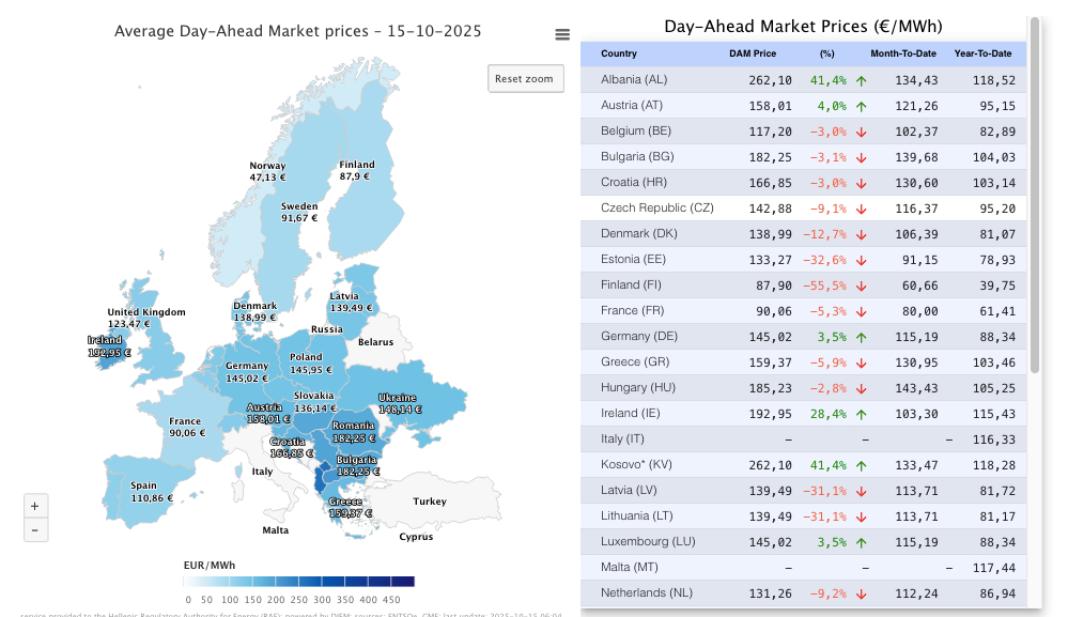 Ως βασική αιτία εντοπίζεται η κατάσταση στην υπόλοιπη Ευρώπη. Οι γειτονικές μας αγορές βρίσκονται στα ύψη, με τη Βουλγαρία και τη Ρουμανία έφτασαν και στα 188 ευρώ, ενώ οι κομβικές αγορές ηλεκτρισμού της Κεντρικής Ευρώπης ήταν επίσης ψηλά με την Ουγγαρία στα 190 και την Αυστρία στα 162, πολύ ψηλότερα και από την Ελλάδα.