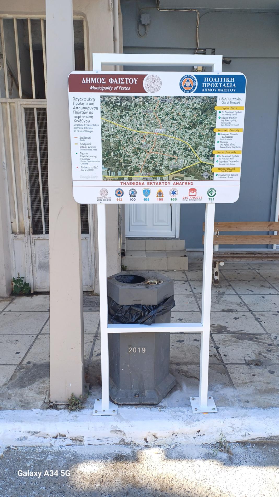 Οι πίνακες περιλαμβάνουν όλες τις απαραίτητες πληροφορίες Πολιτικής Προστασίας, ενώ περιγράφουν και το σχέδιο απομάκρυνσης των πολιτών και συγκέντρωσης τους σε ασφαλή σημεία.«Από την πρώτη στιγμή έχουμε δείξει πως μέλημα μας είναι η βελτίωση της Πολιτικής Προστασίας και η αντμετώπιση όλων των δύσκολων καταστάσεων» αναφέρει με δηλώσεις του ο Αντιδήμαρχος Πολιτικής Προστασίας κ. Αντώνης Κωνσταντουλάκης και προσθέτει: