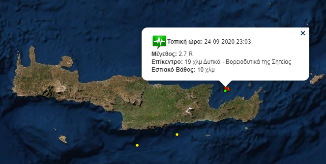 Στις 23:03 σεισμός έντασης 2.7 Ρίχτερ σημειώθηκε στην ίδια περιοχή και συγκεκριμένα 19χλμ Δυτικά – Βορειοδυτικά της Σητείας. Το εστιακό του βάθος υπολογίζεται στα 10 χλμ.