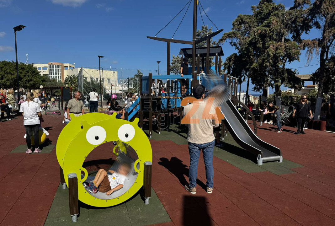 Με παιδικές φωνές και χαμόγελα πλημμύρισε το Σάββατο η νέα παιδική χαρά στην Πλατεία Μιχαήλ Κατσαμάνη στο Γάζι.