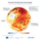 Όπως διαπιστώνεται στην έκθεση, τα τελευταία 30 χρόνια η Ευρώπη θερμαίνεται δύο φορές πιο γρήγορα από τον παγκόσμιο μέσο όρο και αυτό την καθιστά την ταχύτερα θερμαινόμενη ήπειρο στον πλανήτη, με την Ανατολική και Νοτιοανατολική Ευρώπη να θερμαίνονται ταχύτερα από τη Δυτική Ευρώπη και τα νησιά Σβάλμπαρντ στον ευρωπαϊκό Αρκτικό Ωκεανό να είναι μία από τις ταχύτερα θερμαινόμενες περιοχές στον πλανήτη.