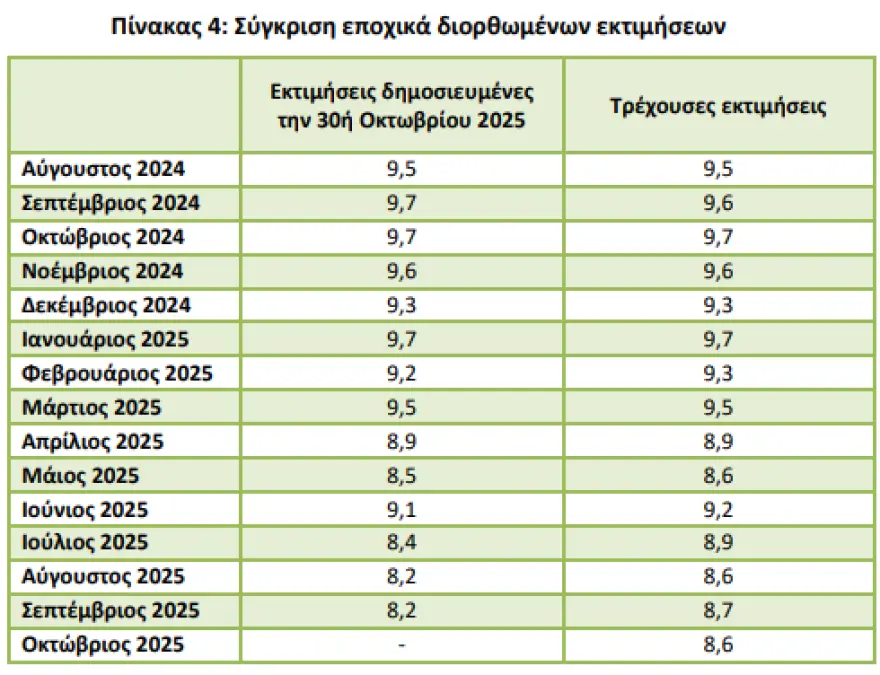Στο 8,6% μειώθηκε το εποχικά διορθωμένο ποσοστό ανεργίας τον Οκτώβριο του 2025 έναντι 9,7% τον Οκτώβριο του 2024, και του αναθεωρημένου προς τα πάνω 8,7% τον Σεπτέμβριο του 2025, σύμφωνα με τις τις εποχικά προσαρμοσμένες εκτιμήσεις απασχόλησης και ανεργίας που δημοσιοποίησε η ΕΛΣΤΑΤ.