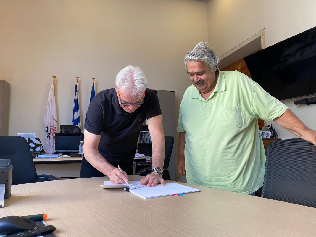 Την προγραμματική σύμβαση μεταξύ του Δήμου Ηρακλείου με την Α.Ο.Τ.Α.–ΗΡΑΚΛΕΙΟ Μ.Α.Ε., για την τεχνική υποστήριξη στη σύνταξη φακέλου και την εκπόνηση των μελετών για την ανέγερση Κέντρου Κοινοτικής Φροντίδας Ανοικτής Προστασίας Ηλικιωμένων (ΚΕ.ΚΟΙ.Φ.Α.Π.Η.) στην συνοικία της Αγίας Αικατερίνης, υπέγραψε την Τετάρτη 14/8 ο Δήμαρχος Ηρακλείου Αλέξης Καλοκαιρινός, παρουσία του Προέδρου του Πολιτιστικού Συλλόγου Αγίας Αικατερίνης Μηνά Μαυροειδή.
