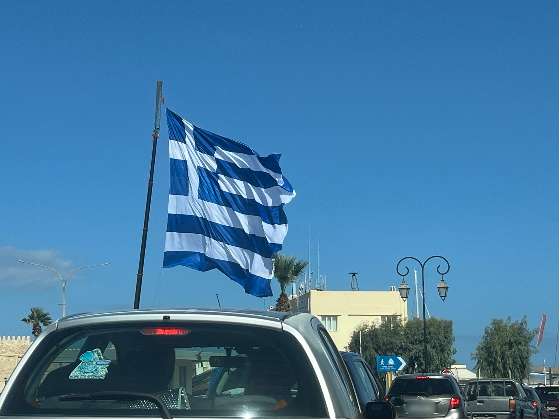 Έκλεψε τις εντυπώσεις η σημαία – γίγας που κυματίζει περήφανα στο λιμάνι του Ηρακλείου.