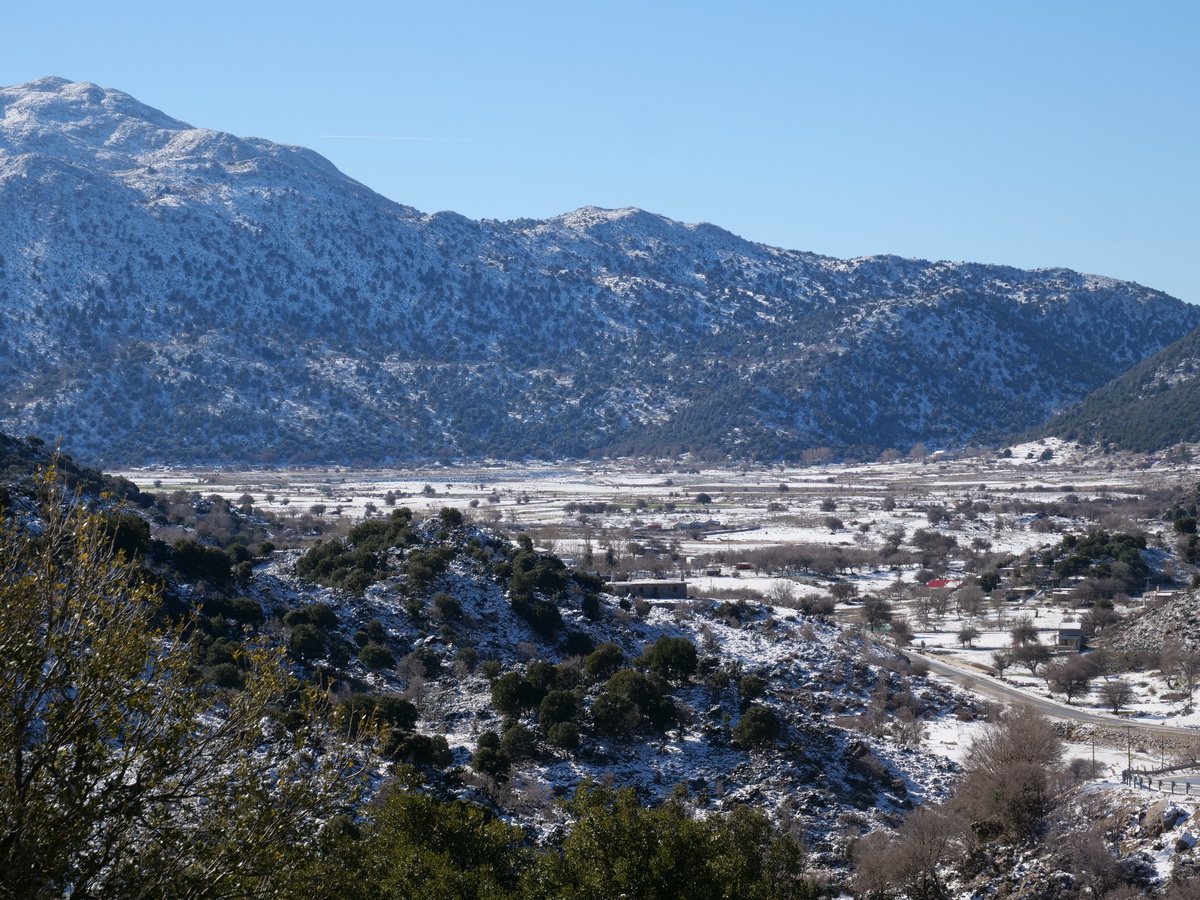 Το τοπίο παραμένει λευκό και μαγικό στα βουνά της Κρήτης. Ψηλορείτης και Ομαλός, έχουν καλυφθεί από ένα λευκό «πέπλο» χιονιού και η εικόνα μοιάζει με παραμύθι.