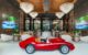 Στο εξωτερικό, μια ατσάλινη κατασκευή με το εμβληματικό αλογάκι της Ferrari δεσπόζει πάνω από ένα σιντριβάνι, υποδεχόμενη τους επισκέπτες.
