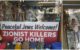 «Φιλήσυχοι Εβραίοι, καλώς ήρθατε. Σιωνιστή δολοφόνε, πήγαινε σπίτι σου.»