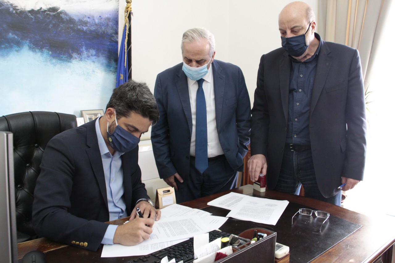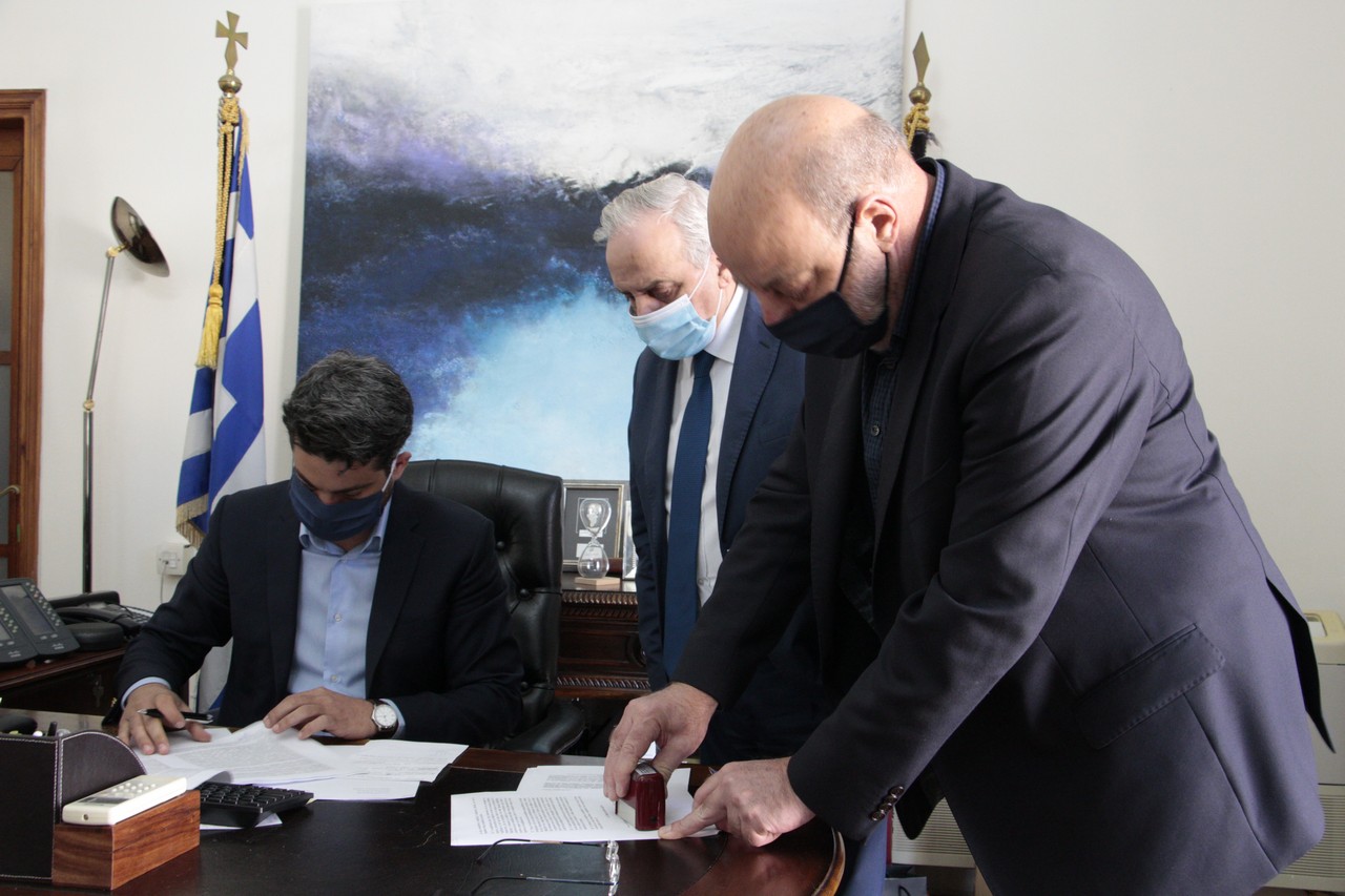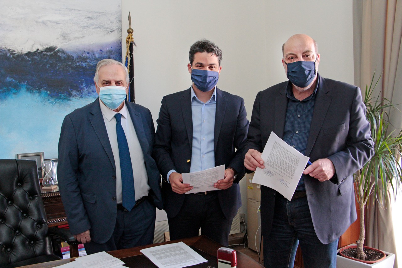 Στην υπογραφή του συμφωνητικού για την απαλλοτρίωση του οικοπέδου της ΑΒΕΑ, προχώρησαν ο Δήμαρχος Χανίων, Παναγιώτης Σημανδηράκης και ο Διευθύνων Σύμβουλος της εταιρίας “Κρητικά Ακίνητα ΑΕ”, Γιώργος Ανδρουλάκης, παρουσία του Πρόεδρου του Δημοτικού Συμβουλίου Χανίων, Ευτύχη Δαμιανάκη.