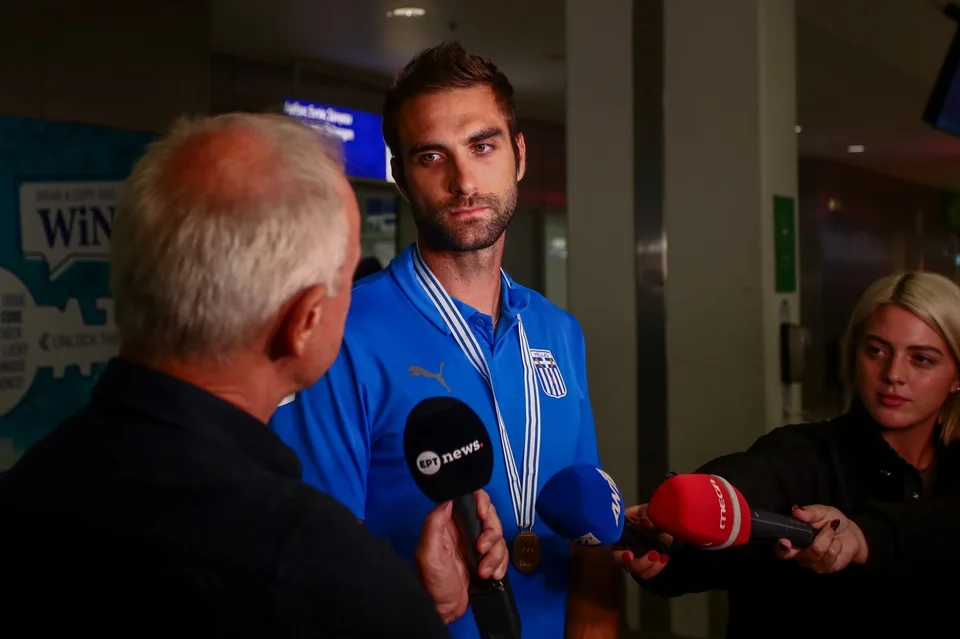 Ο Στέφανος Ντούσκος, μιλώντας σε δημοσιογράφους κατά την άφιξή του στην Ελλάδα / Φωτογραφία: Eurokinissi