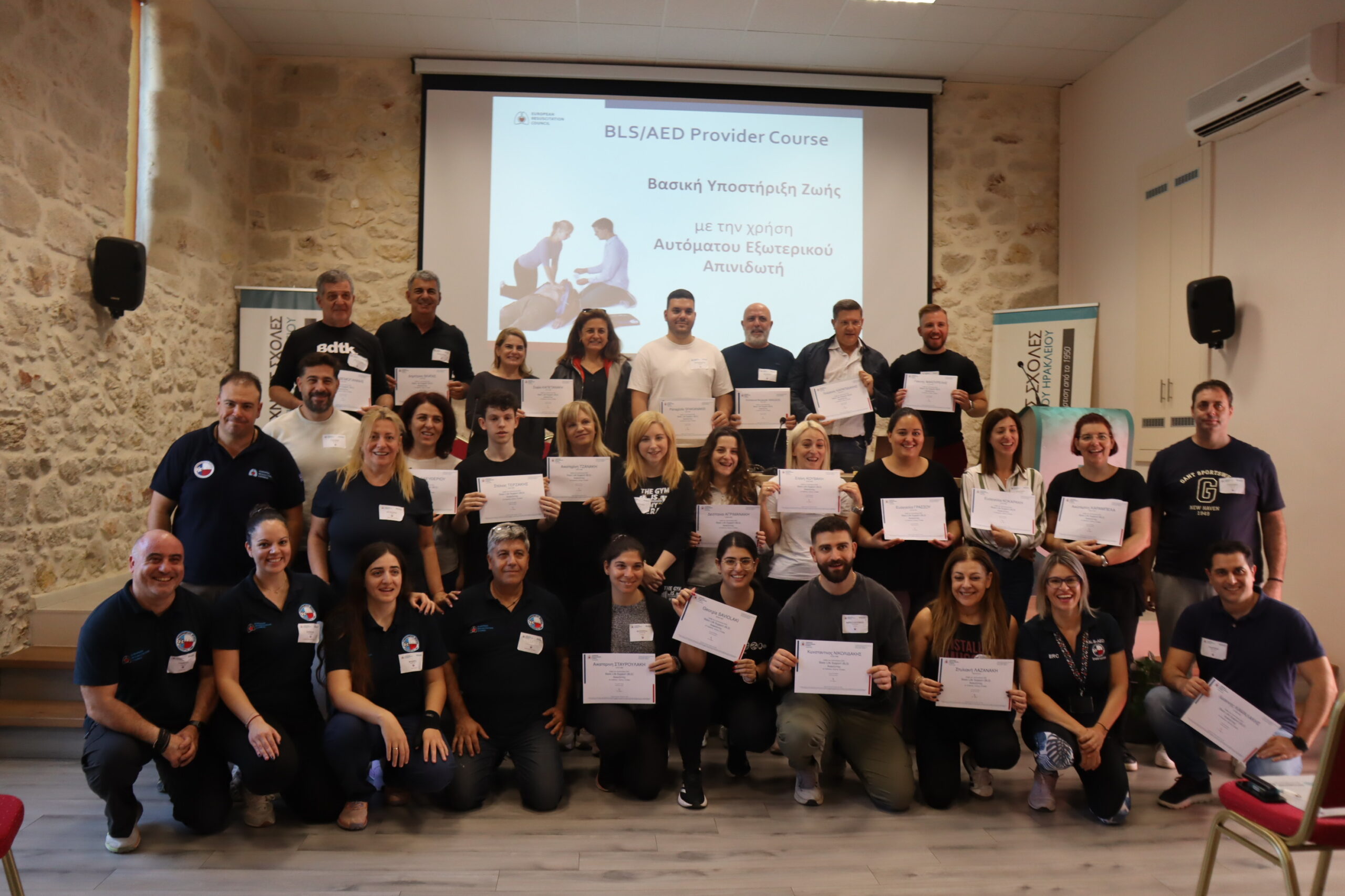 Οι συμμετέχοντες είχαν τη δυνατότητα να εκπαιδευτούν και να πιστοποιηθούν σε θεωρητικό και πρακτικό επίπεδο σε σωτήριες γνώσεις και δεξιότητες σχετικά με την εφαρμογή της Καρδιοπνευμονικής Αναζωογόνησης (ΚΑΡ.Π.Α.) και τη χρήση του Αυτόματου Εξωτερικού Απινιδωτή (Α.Ε.Α) σε περιπτώσεις καρδιακής ανακοπής, με βάση τις νέες κατευθυντήριες οδηγίες του Ευρωπαϊκού Συμβουλίου Αναζωογόνησης.