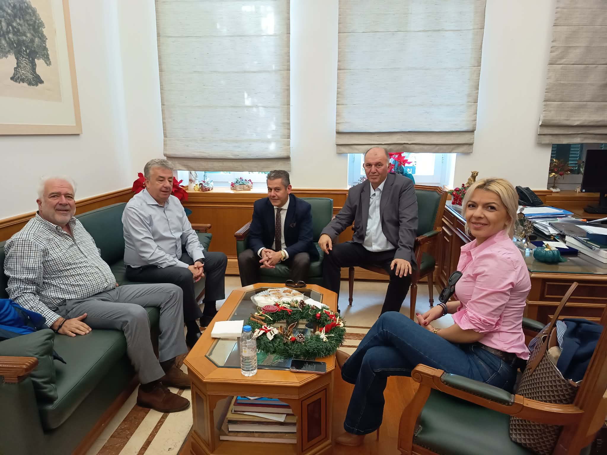 Ημέρες ανταλλαγής ευχών και δώρων και η ΔΕΕΠ Ηρακλείου της Νέας Δημοκρατίας με επικεφαλής τον πρόεδρο Κώστα Γιαννουλάκη, πραγματοποίησε επίσκεψη στο Μέγαρο της Περιφέρειας Κρήτης, συνοδευόμενος από τον Αντιπρόεδρο Αιμίλιο Παττακό, τον Νίκο Καμπάνη μέλος της ΔΕΕΠ και τομεάρχη ενέργειας, περιβάλλοντος και κλιματικής αλλαγής και την πρόεδρο ΔΗΜΤΟ Μινώα Πεδιάδας Μάνια Οικονομάκη .